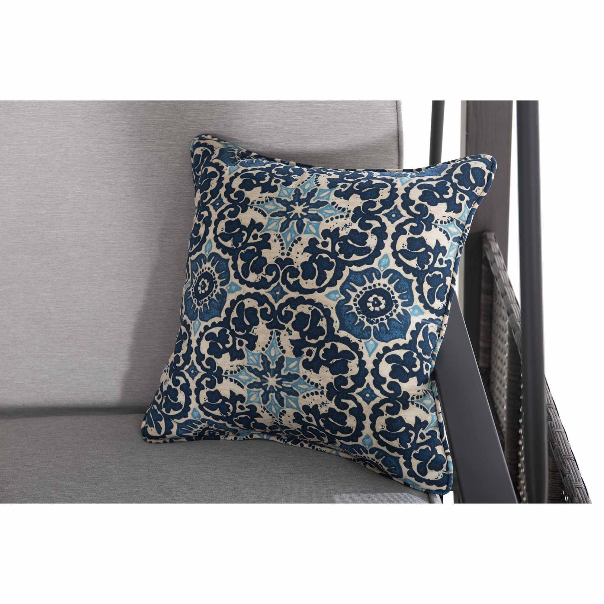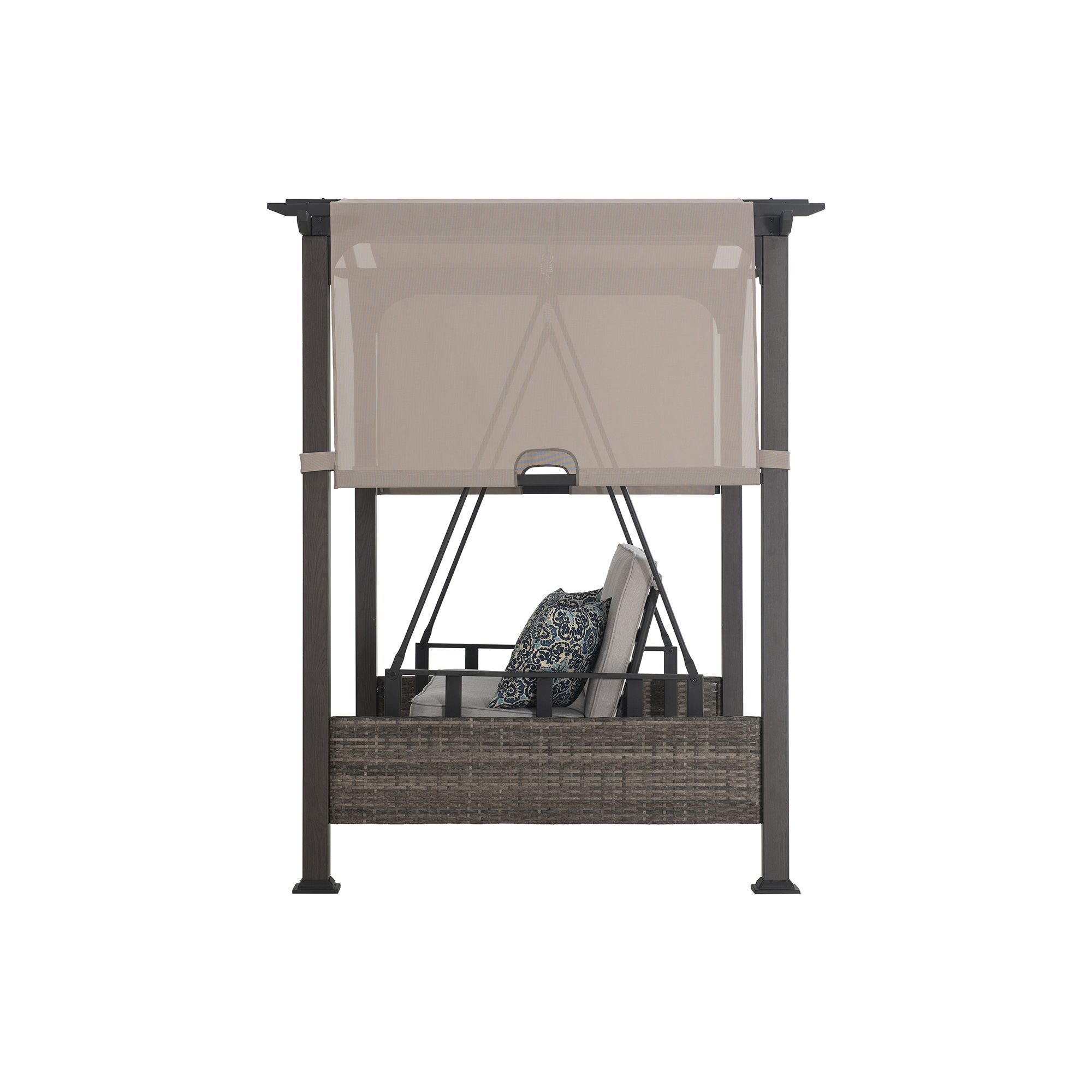 This is a relaxing and durable outdoor swing that is perfect to enjoy in any outdoor setting. Heavy gauge springs connect the swing to the frame, ensuring a smooth, gentle rocking motion that is stable and comfortable to sit or lie down. Includes comfortable seat and back cushion for added comfort. Perfect to use around porch, garden, patio, or deck. The frame of the swing is made of durable steel with decorative resin wicker accents. Polyester shade protects you from the sun for all-day enjoyment.