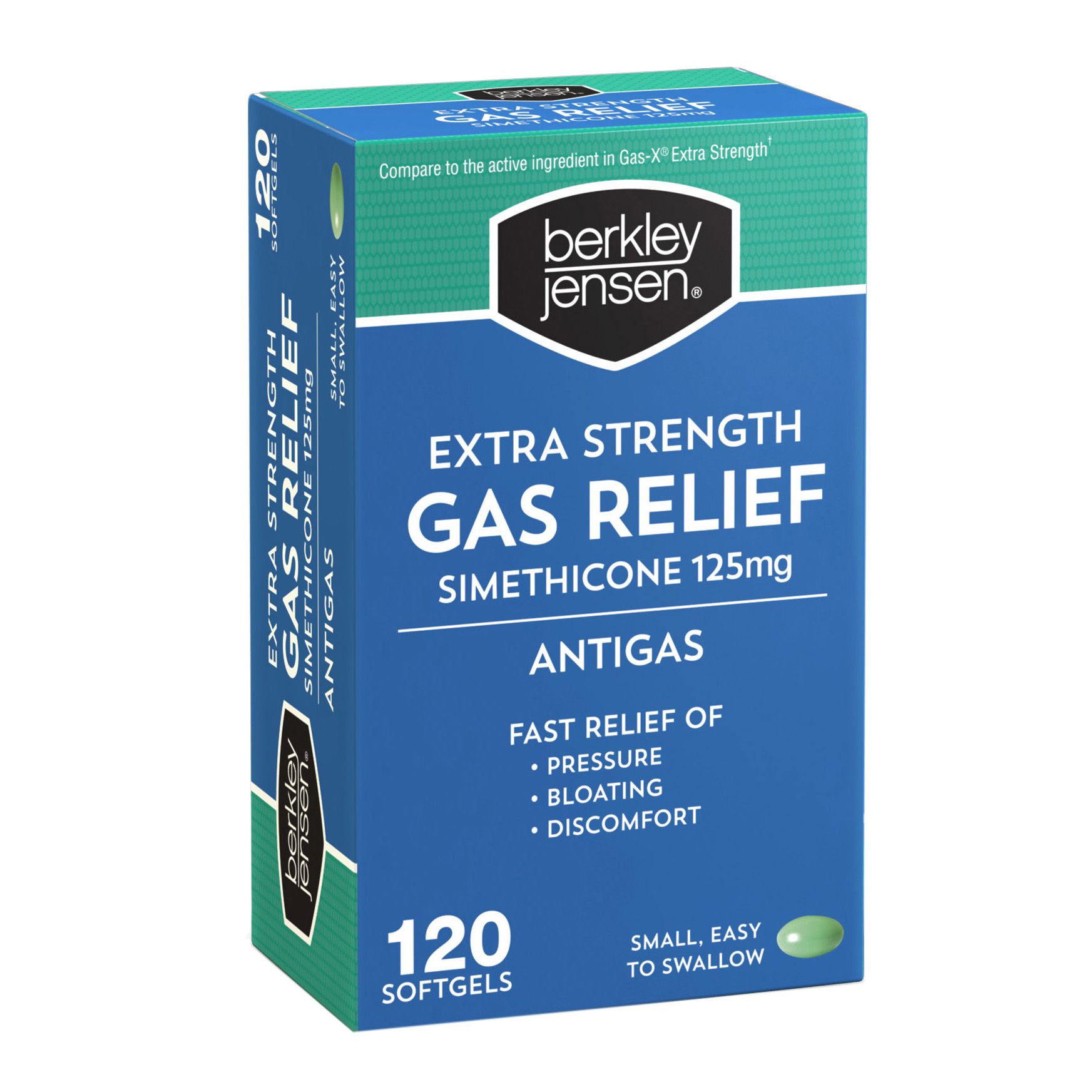 Berkley Jensen Extra Strength Gas Relief Softgels relieve the uncomfortable symptoms of gas such as bloating, pressure and fullness.