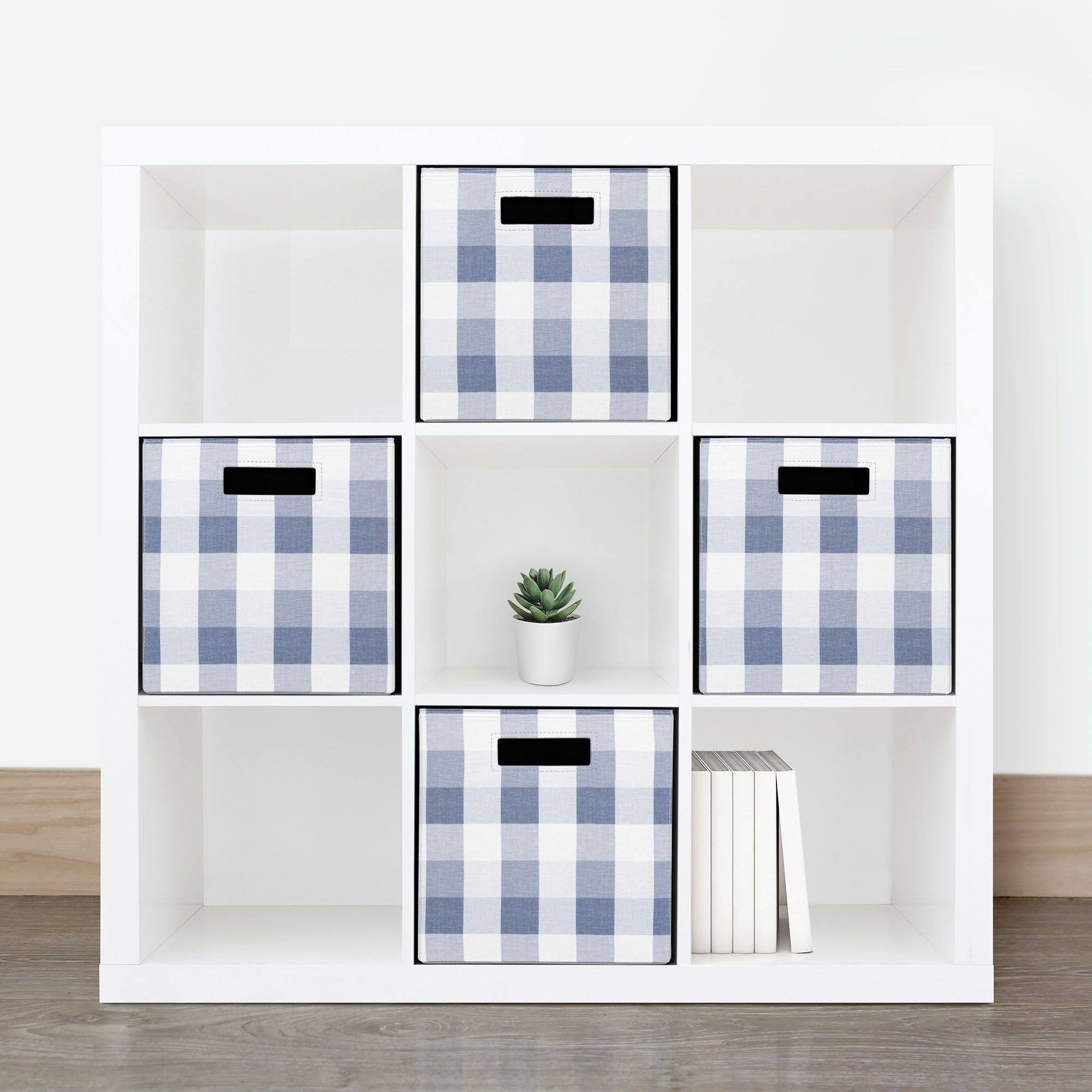 Includes four-piece set of foldable canvas storage cubes