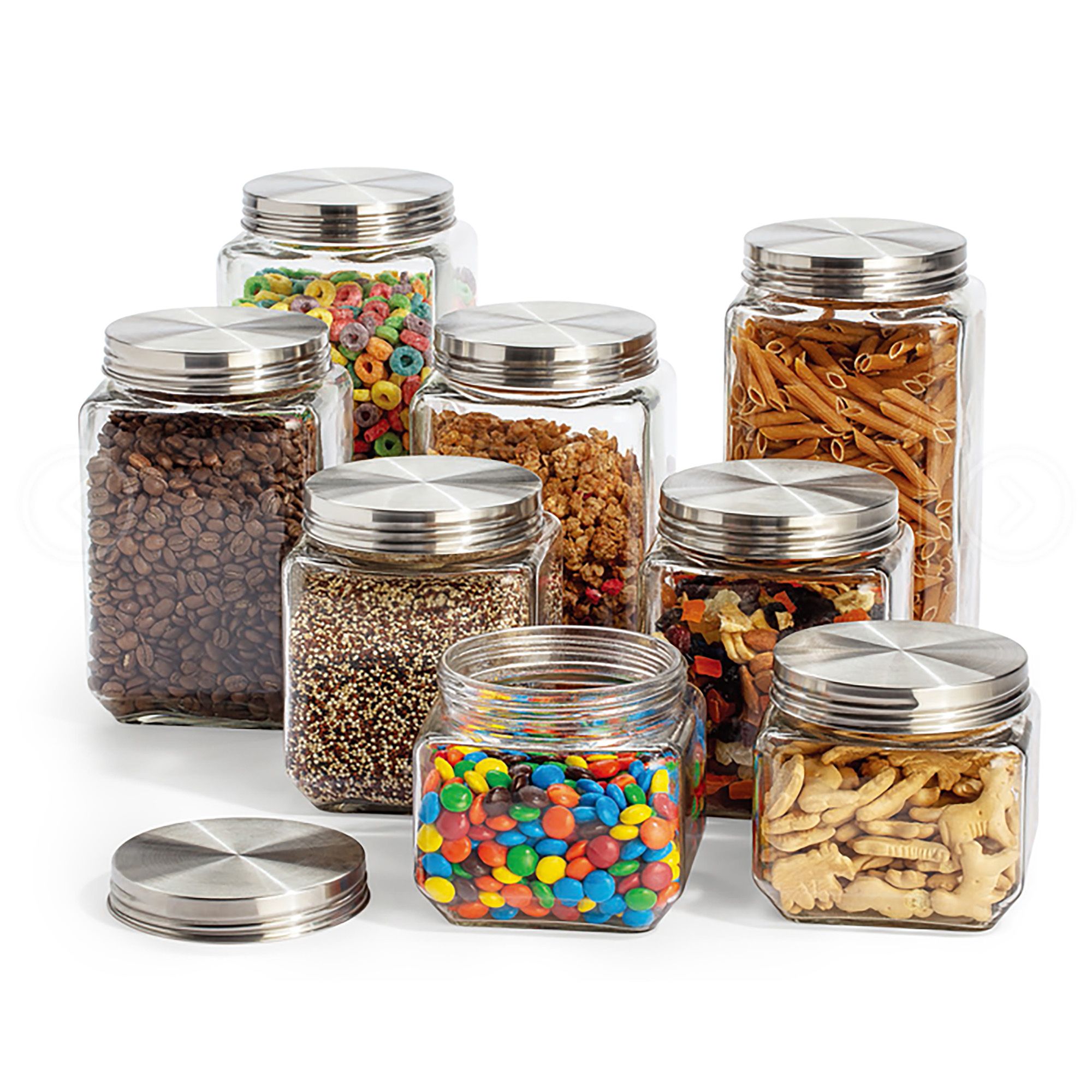 These airtight, high quality, space saving storage containers keep your dry foods fresh and your pantry organized. Shaped for maximum space efficiency, these stackable, modular canisters can be completely customized to fit any space. Each size is perfectly calibrated to store common household staples including cereal, flour, sugar, pasta, rice, coffee, nuts, snacks and more. These canisters are BPA free and FDA approved.