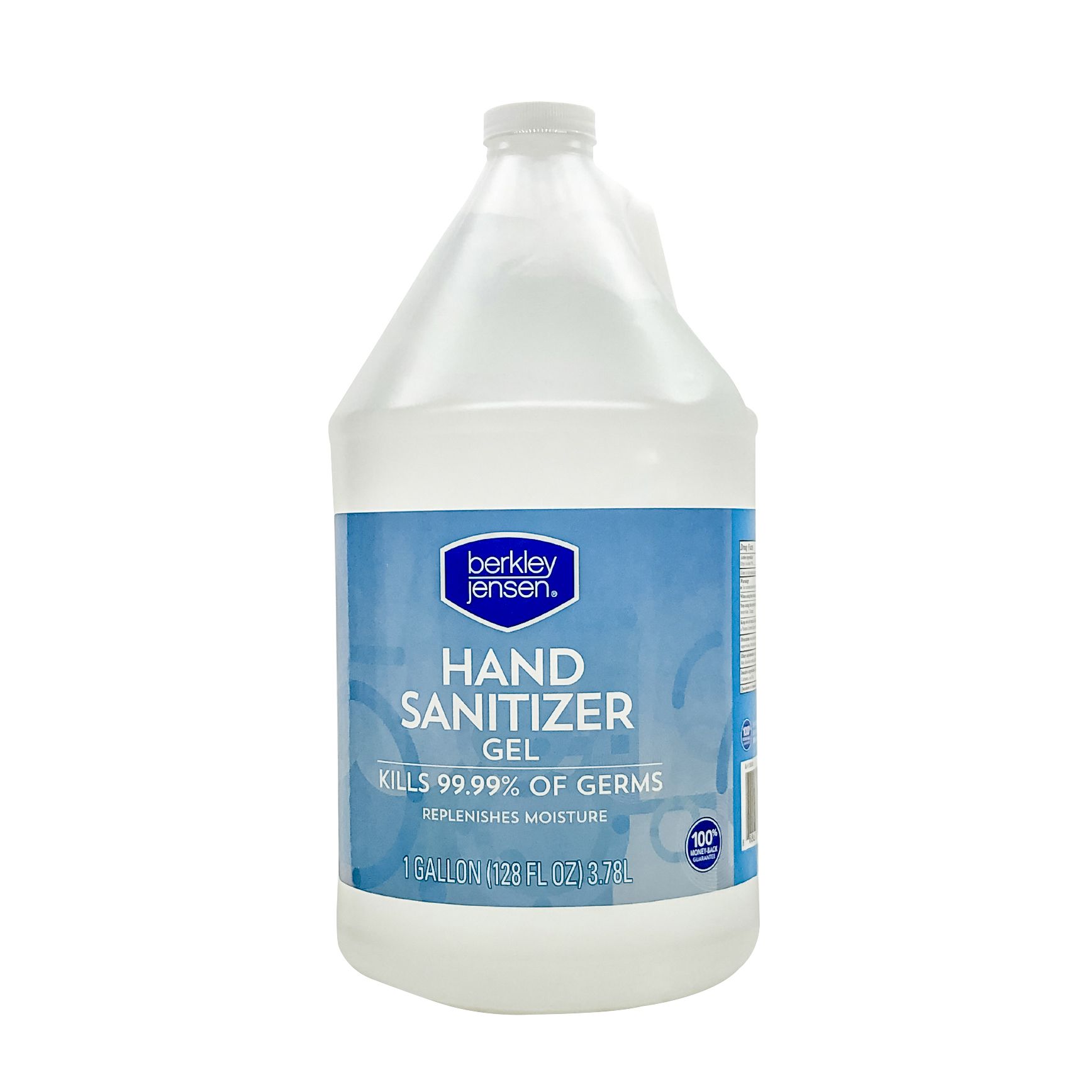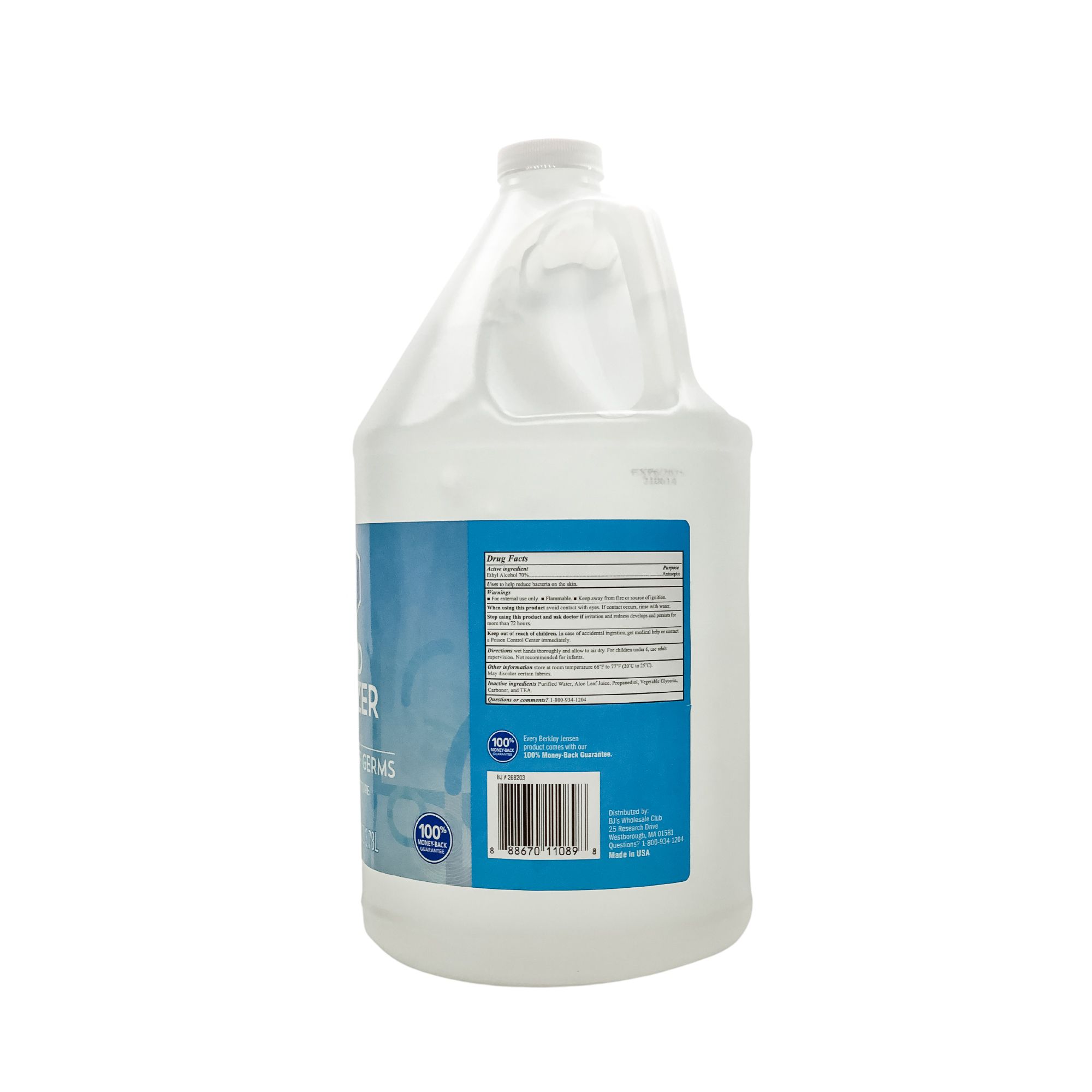 70% ethyl alcohol Kills 99.99% of Germs Made in the USA Aloe replenishes moisture Refill size 100% money back guarantee Includes one gal. hand sanitizer gel