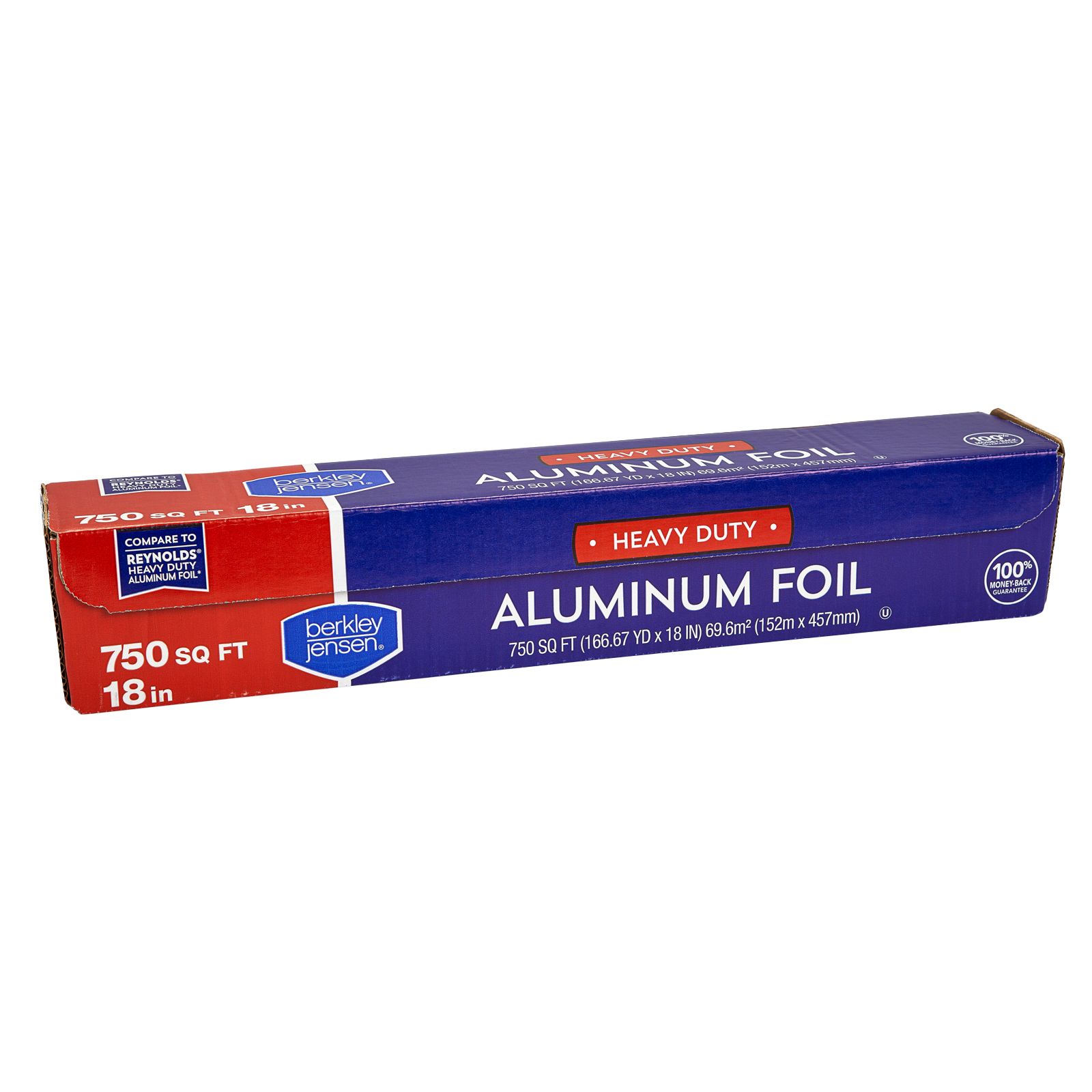 Ideal for on-the-go meals and leftovers, Berkley Jensen 750 Sq. Ft. Heavy-Duty Aluminum Foil helps keep food fresh and prevent freezer burn. Before cooking, line your pans with this aluminum foil to avoid caked-on messes. After you're done, simply recycle it.