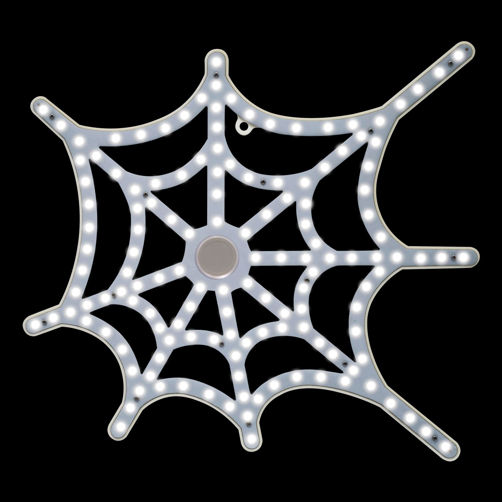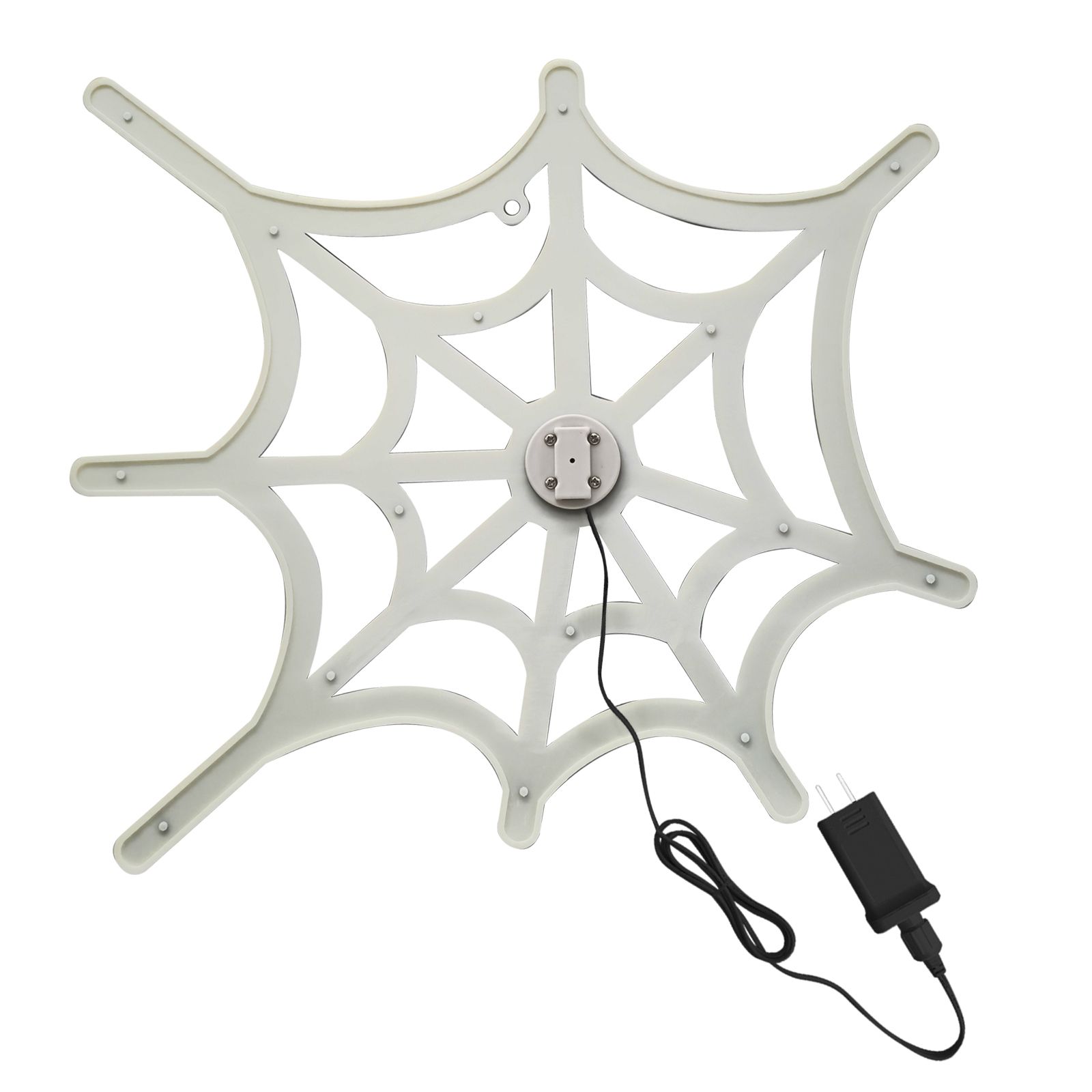 16" hi-vibrant spider web - 142 micro hi-intensity led lights - twinkling pure white - continuous on technology - 35.63" total height with included yard stake - suction cup included for window application - 6' lead wire. One year warranty.