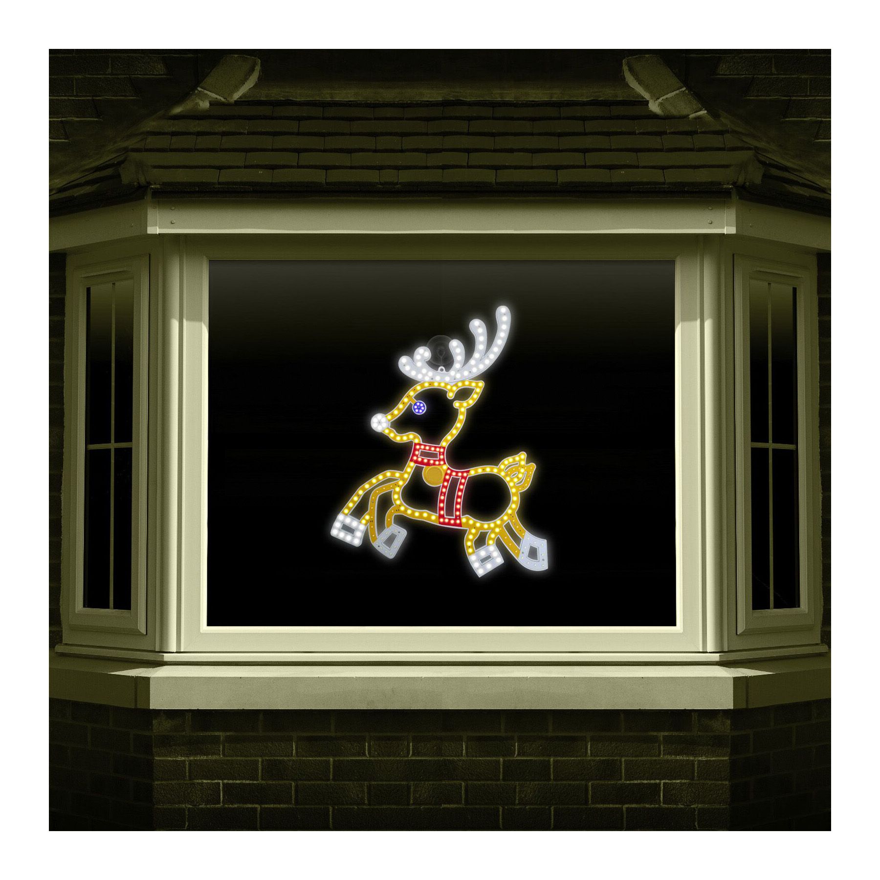Reindeer décor includes a suction cup and 2 pc. stake for indoor/outdoor mounting