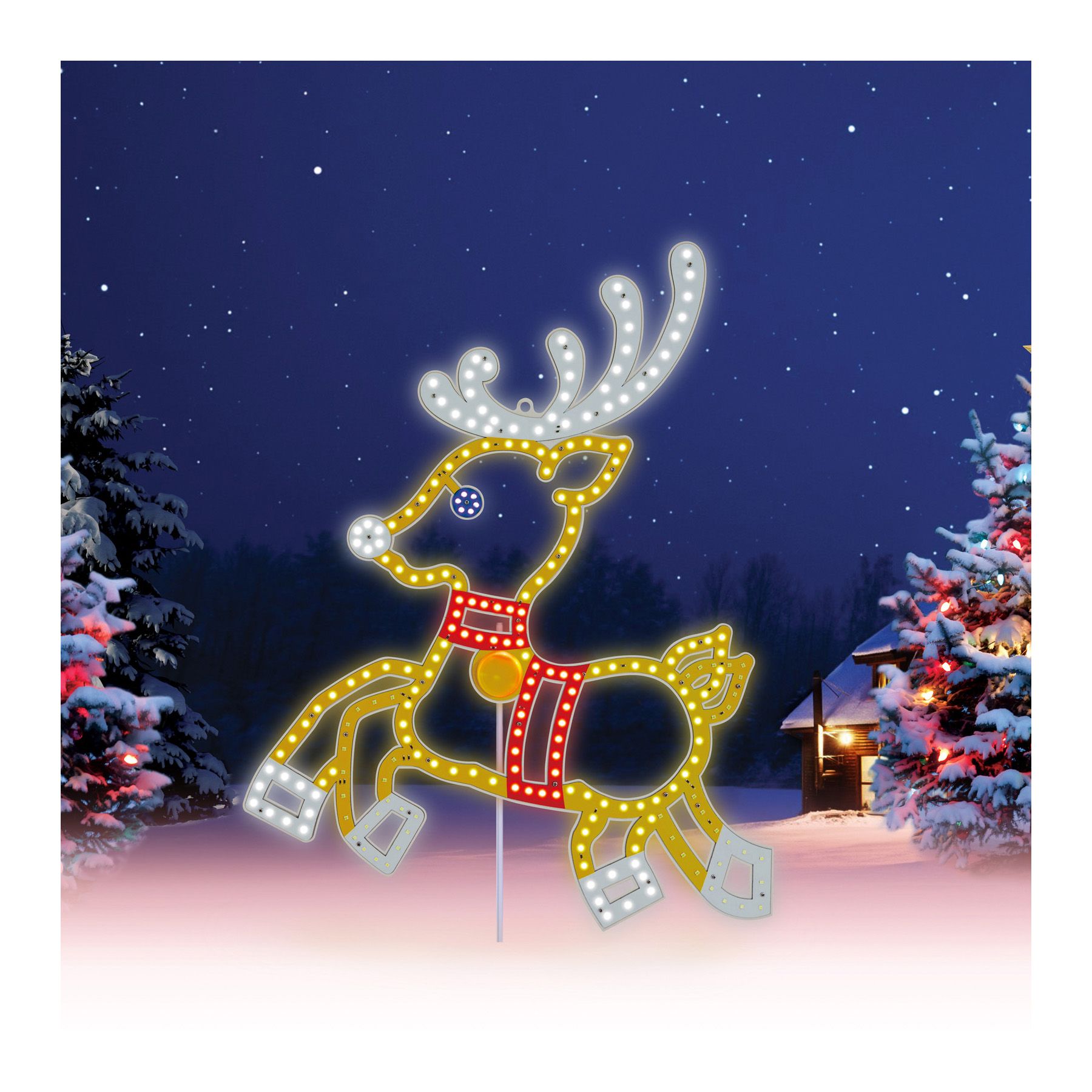 Impress your friends and neighbors with this unique and fun prancing and twinkling Reindeer