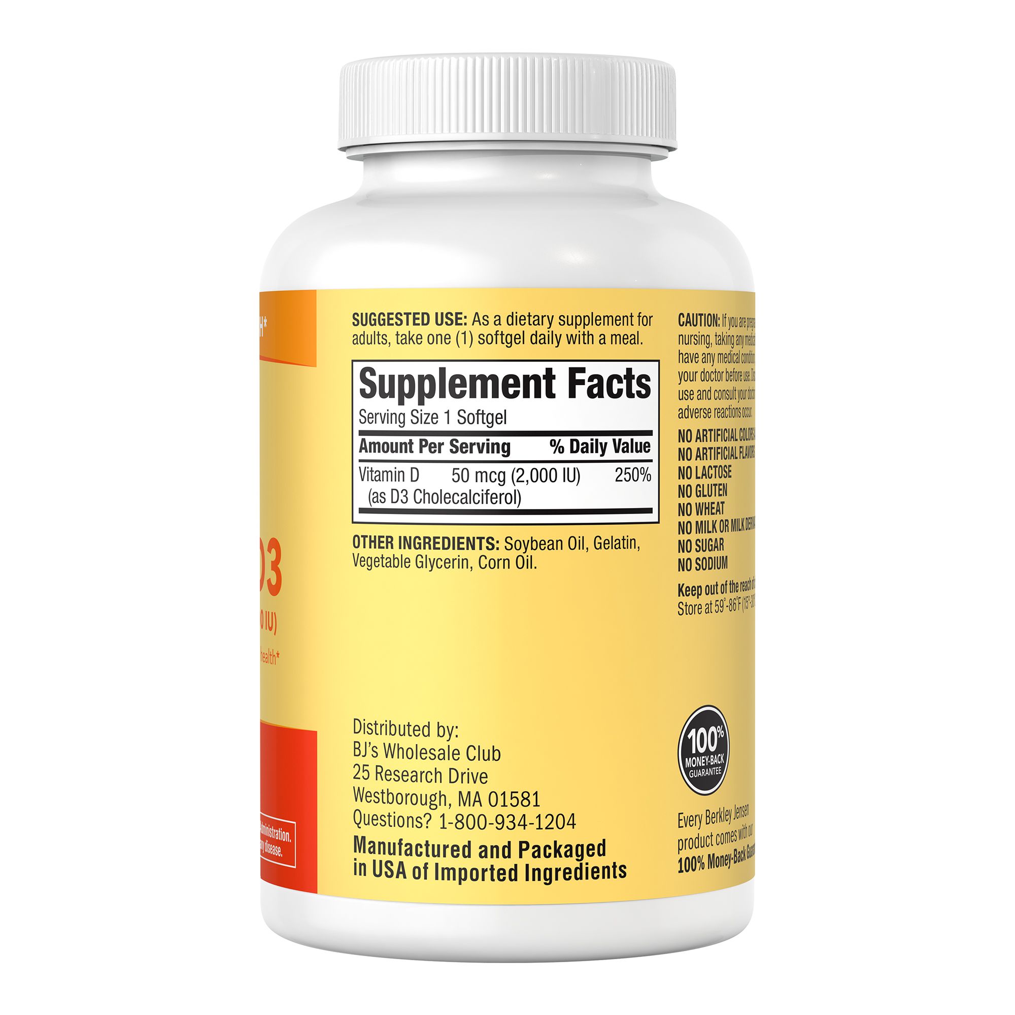 Berkley Jensen High-Potency Vitamin D3 Dietary Supplement supports bone health and aids in immune system function. This supplement contains no artificial flavors, preservatives, soy, lactose, dairy or gluten.