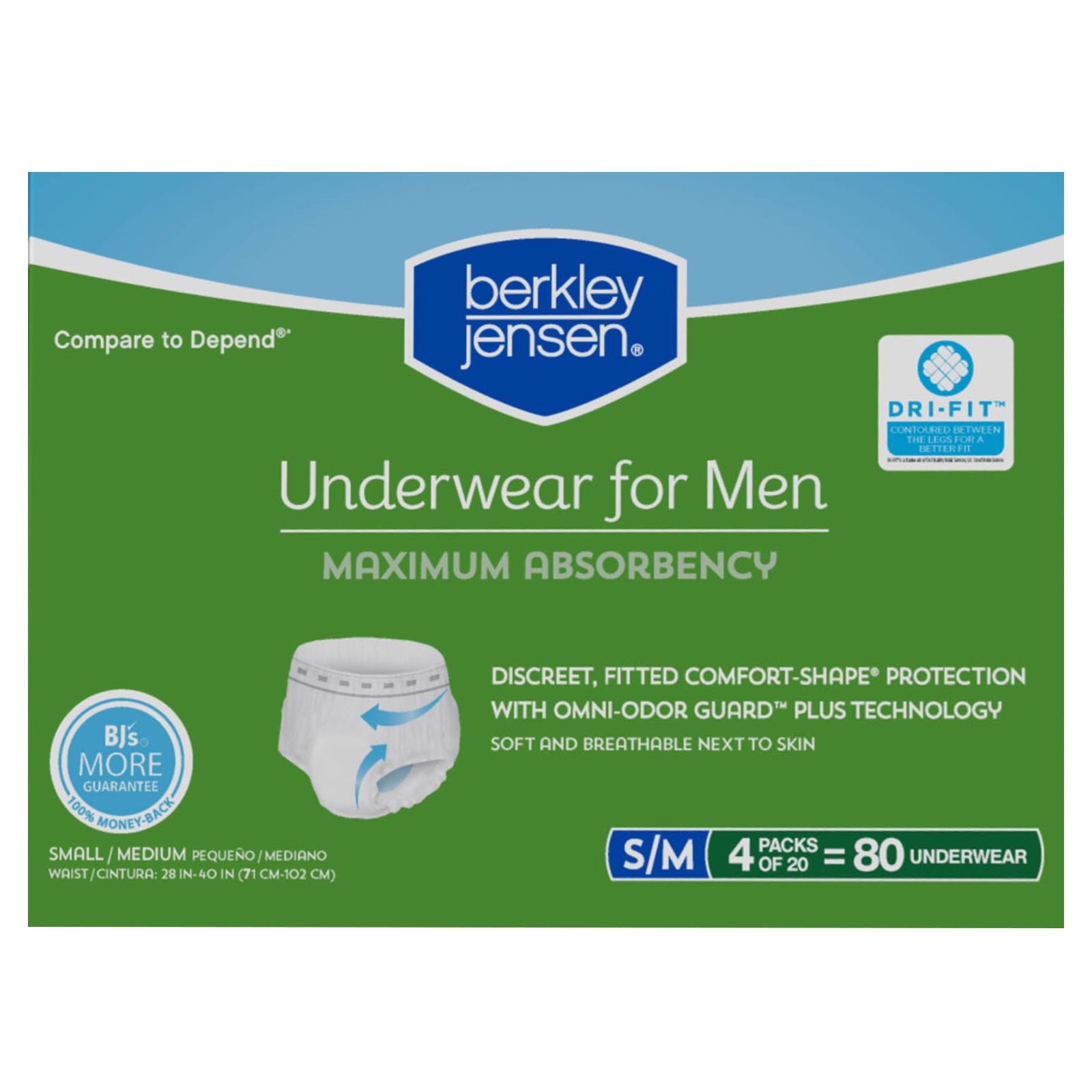 Berkley Jensen Incontinence Underwear for Men with Maximum Absorbency, Size S/M, 80 ct.