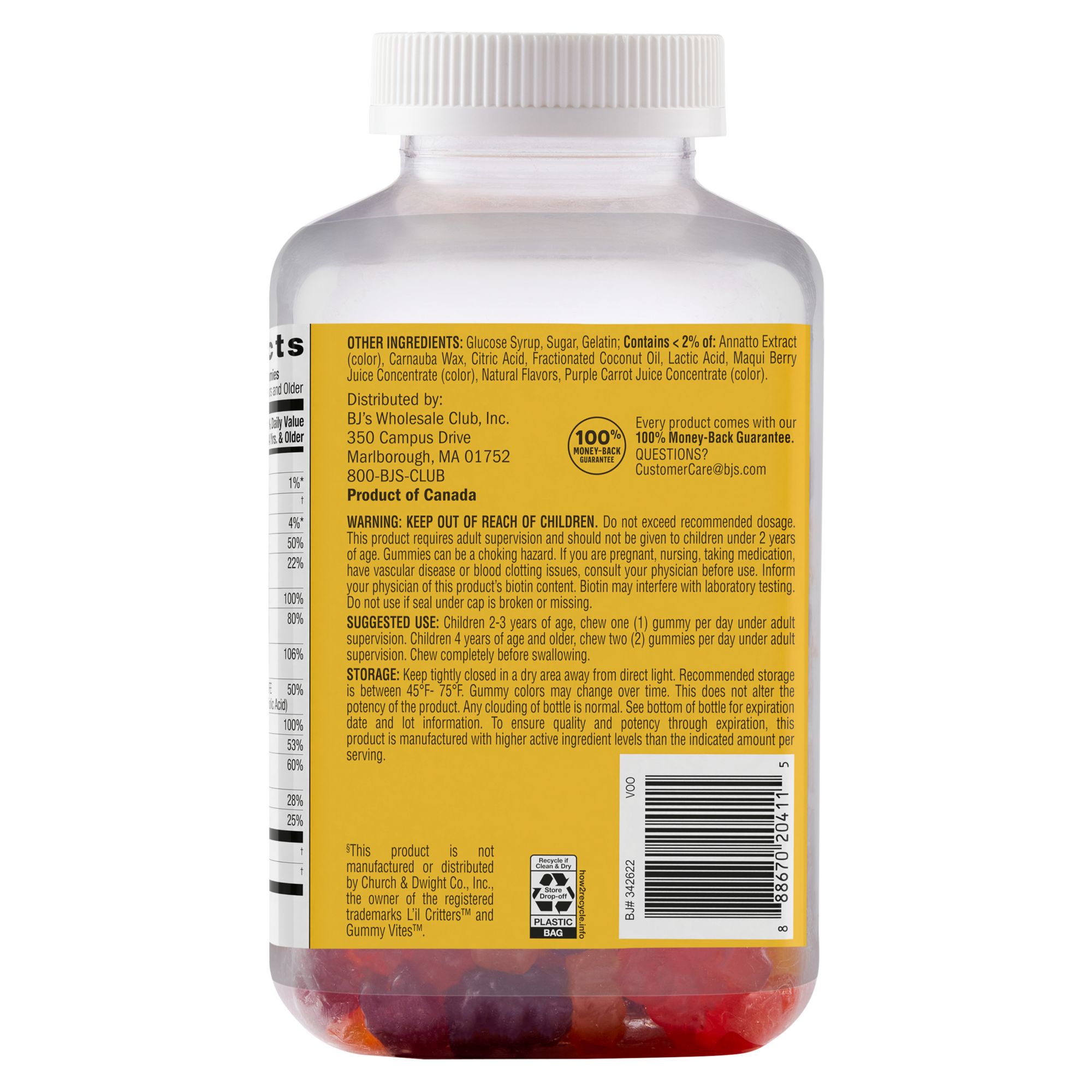 Product Warnings and Restrictions: Warning: Keep Out Of Reach Of Children. Do Not Exceed Recommended Dosage. This Product Requires Adult Supervision And Should Not Be Given To Children Under 2 Years Of Age. Gummies Can Be A Choking Hazard. If You Are Pregnant Or Nursing, Have A Medical Condition, Or Are Taking Any Prescription Medications, Especially Anticoagulants, Consult A Physician Before Use. Vitamin E Can Antagonize The Effect Of Anticoagulants, Including Warfarin. Inform Your Physician Of This Product’s Biotin Content. Biotin May Interfere With Laboratory Testing. Do Not Use If The Seal Under The Cap Is Broken Or Missing. Storage: Keep Tightly Closed In A Dry Area Away From Direct Light. Recommended Storage Is Between 45°F-75°F. Gummy Colors May Change Over Time. This Does Not Alter The Potency Of The Product. Any Clouding Of The Bottle Is Normal. See Bottom Of Bottle For Expiration Date And Lot Information. To Ensure Quality And Potency Through Expiration, This Product Is Manufactured With Higher Active Ingredient Levels Than The Indicated Amount Per Serving.
