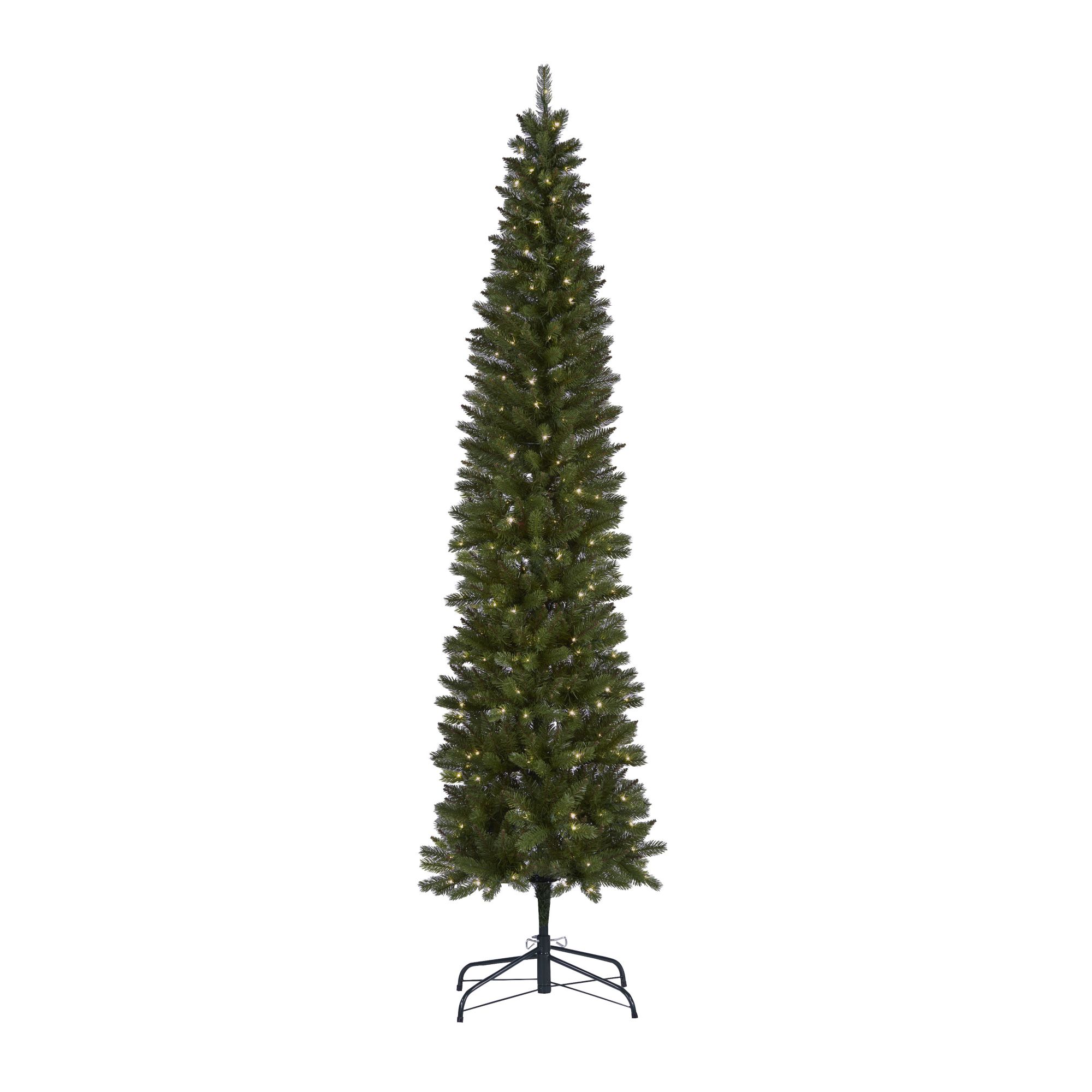 Brighten your holidays with this eye-catching pre-lit artificial Christmas tree, designed to bring festive charm and convenience to your home. Featuring 711 realistic branch tips and 300 pre-strung warm white Sylvania microdot LED lights, this tree offers eight built-in lighting functions—from steady glow to gentle twinkle—so you can set the perfect holiday mood. The tree comes in three easy-to-assemble sections for quick setup and convenient storage. A foot pedal provides effortless on/off operation, and a sturdy metal stand ensures lasting stability. With its elegant lighting and full, natural look, this tree is sure to create lasting holiday memories for years to come.