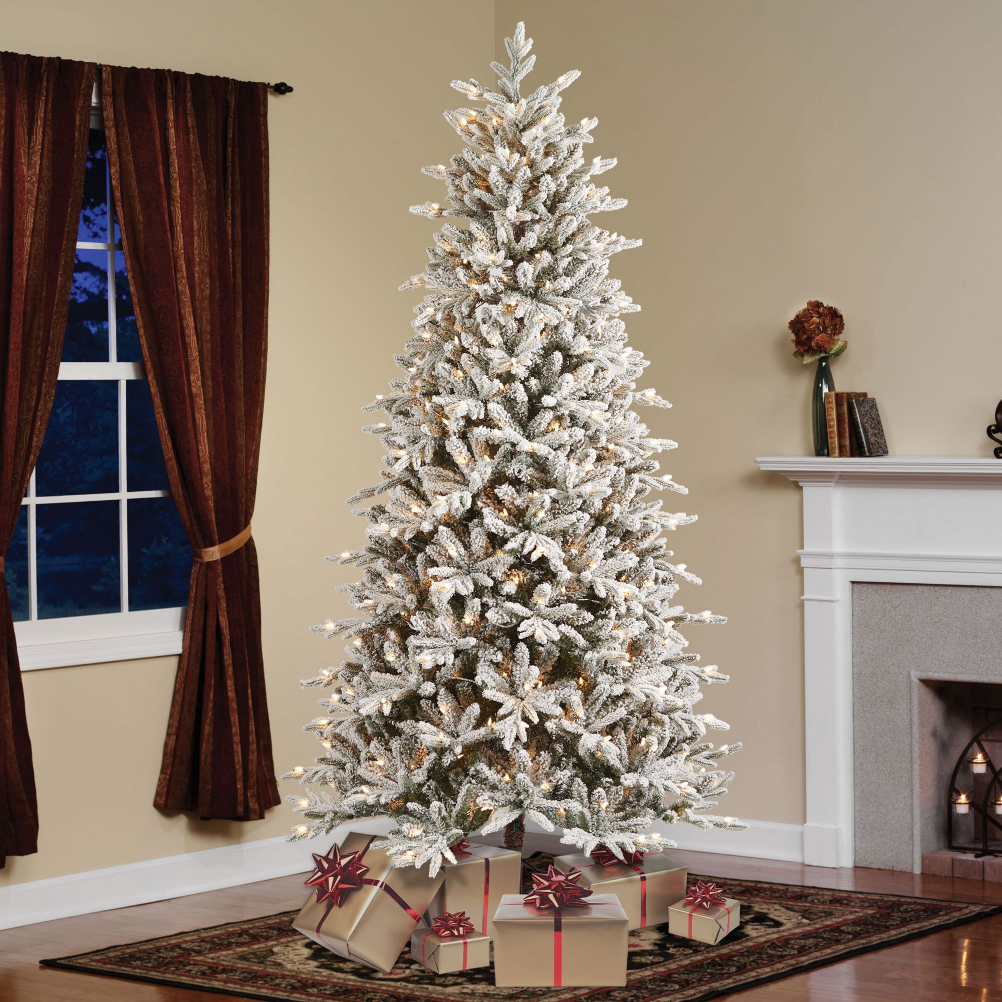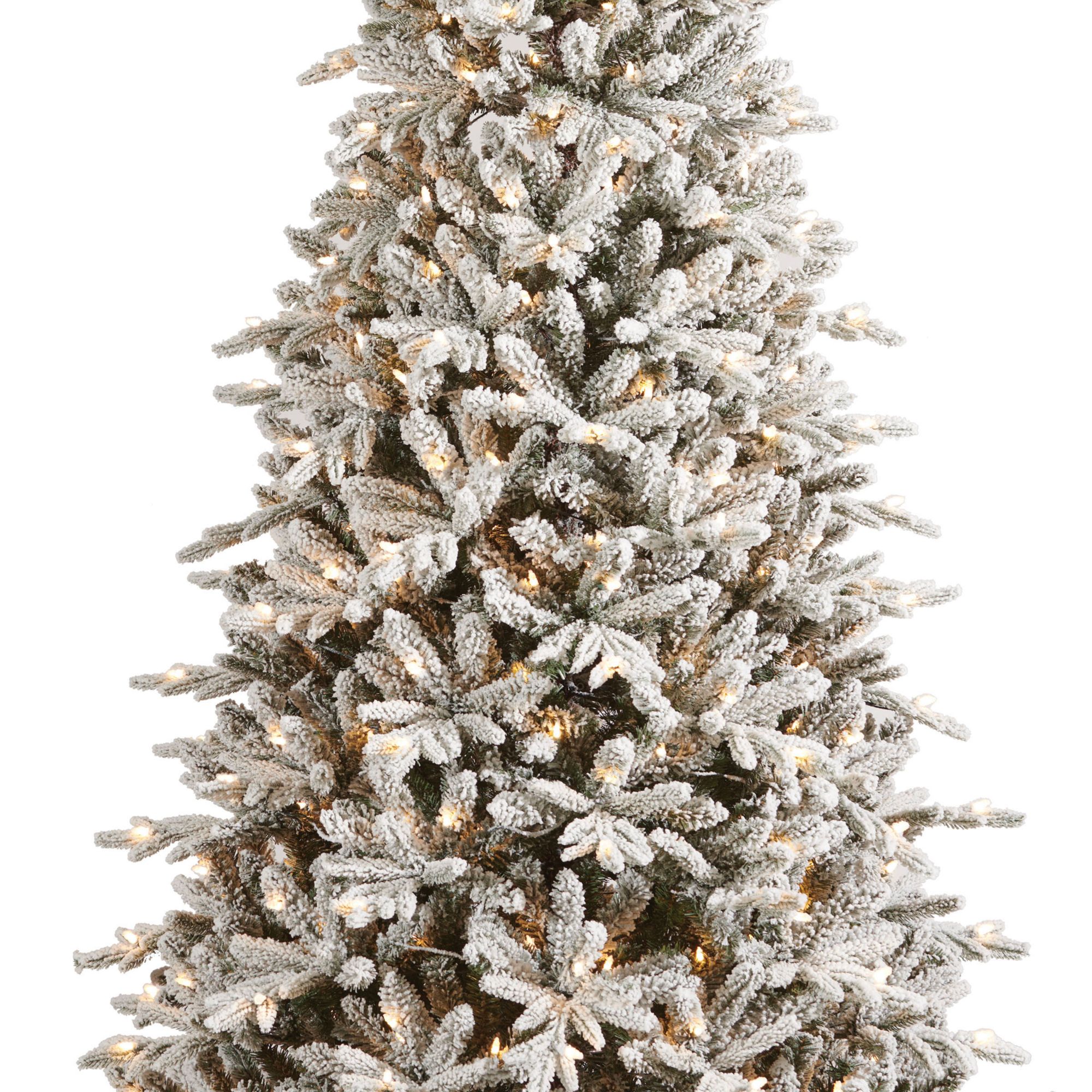 Berkley Jensen's pre-lit 7.5' Flocked one-plug Christmas tree is the perfect addition to your holiday home decor. This luxurious artificial Christmas tree features 1,988 branch tips with a 48" girth. To add a festive glow to your home, this tree is pre-strung with 400 warm white M5 glass-look LED SYLVANIA lights and has three different lighting functions. The one-plug technology makes setup effortless. This tree's freshly harvested realism will make your holiday home a delightful gathering place season after season.