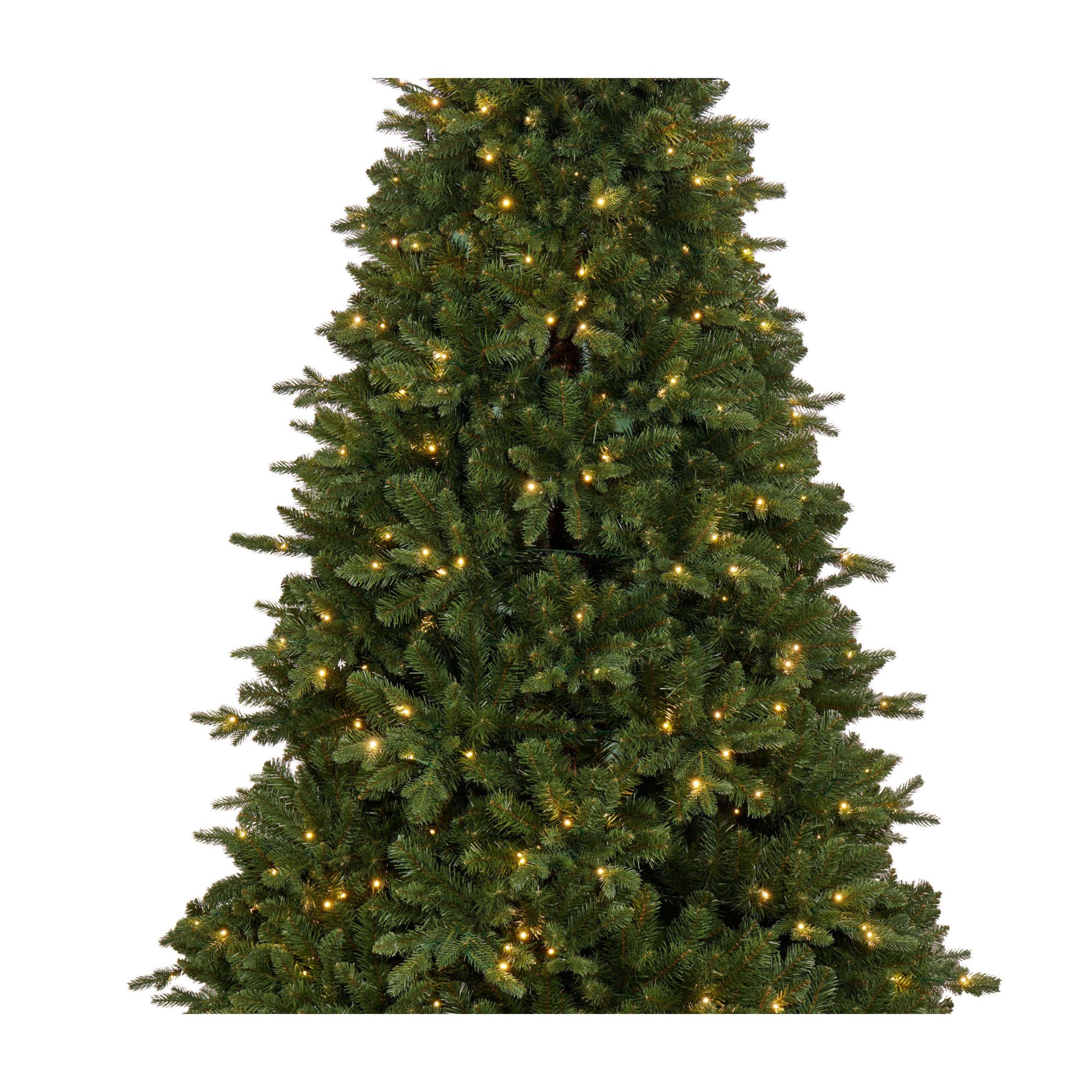 Berkley Jensen 7.5' Aurora color-changing LED tree creates beautiful sights in your holiday home. This luxurious artificial Christmas tree features 3,089 realistic branch tips, 550 hassle-free pre-strung 11-function warm white/multicolor(R/B/G/P/WW) micro LED Sylvania lights, one-plug quick connect technology for easy setup, a convenient on/off foot pedal, remote control, and includes a metal tree stand. The tree's pre-lit innovative LED lights allow you to create and control 11 different lighting functions. This tree is sure to glamorize your space and create Christmas-time memories.