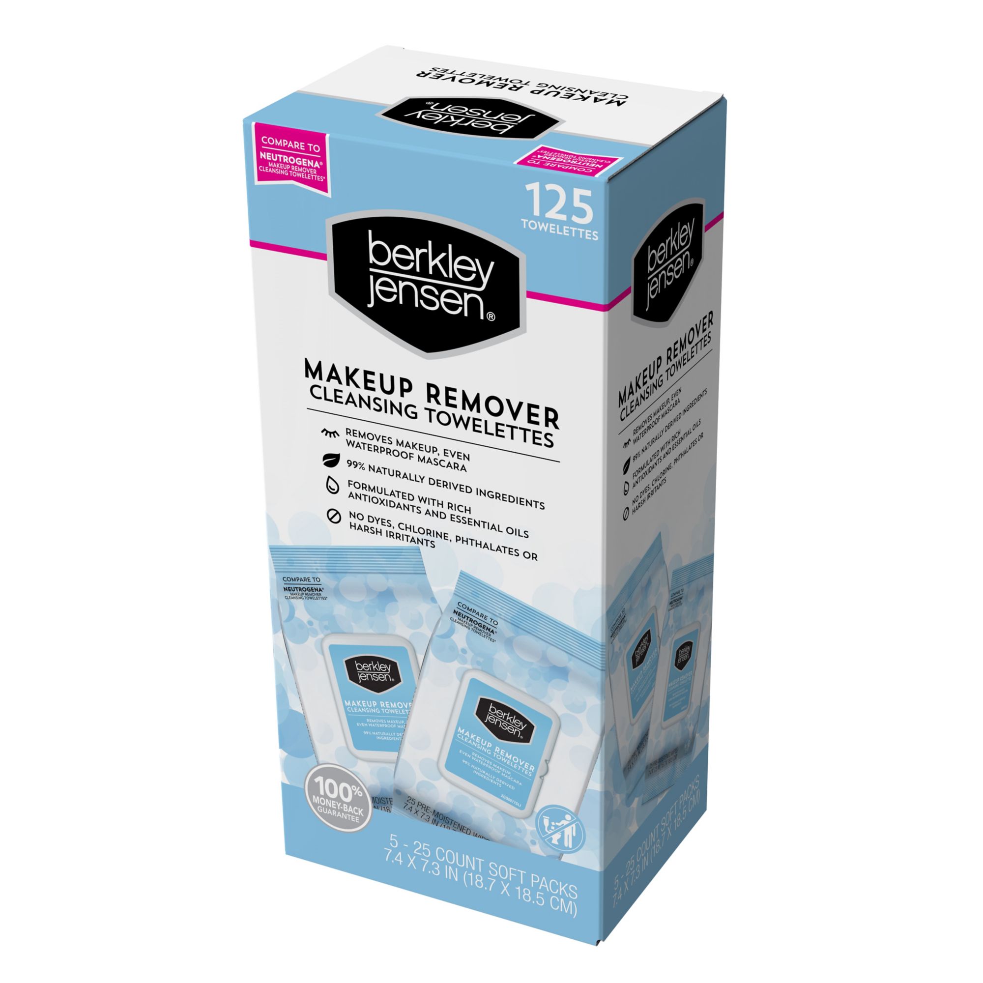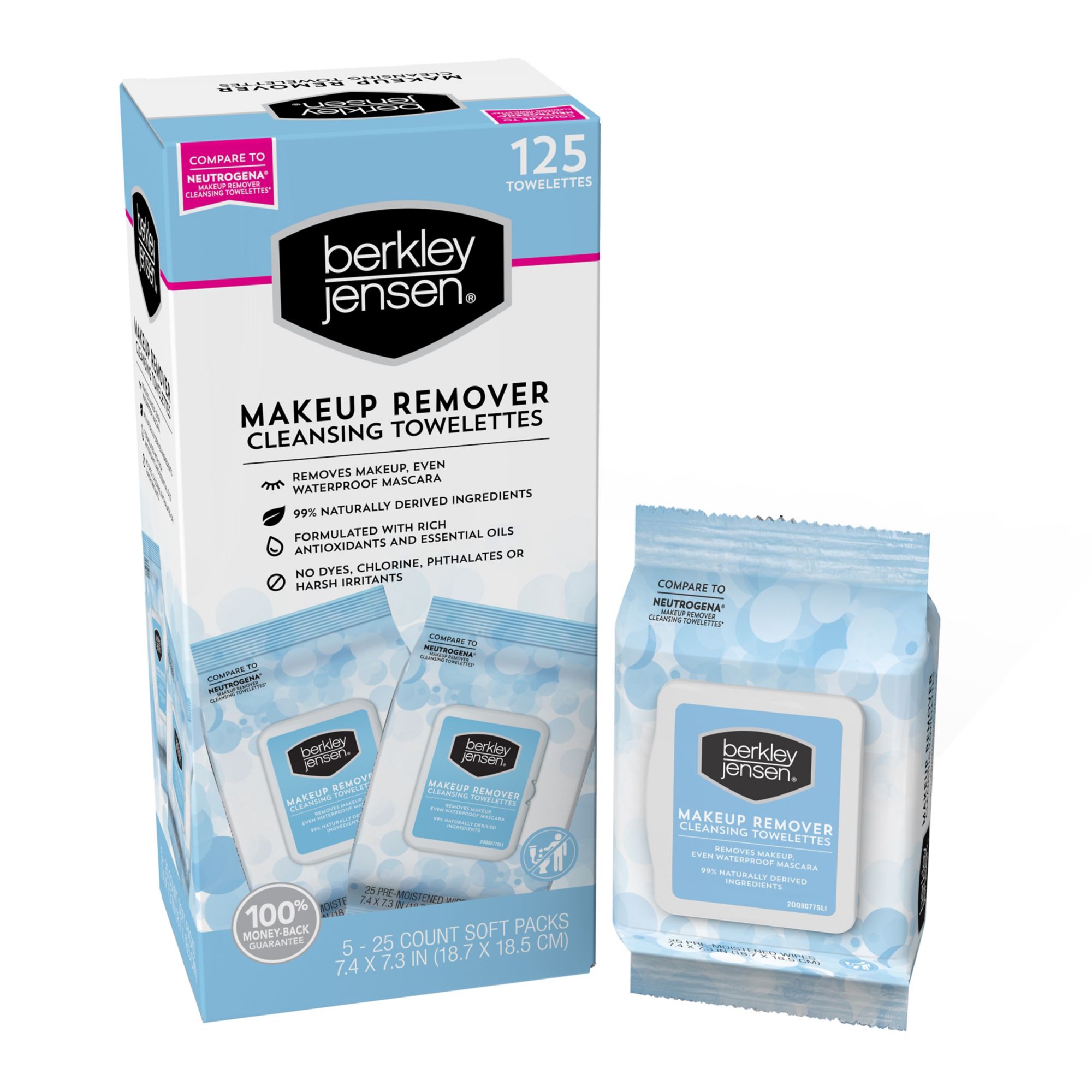 Berkley Jensen Makeup Remover Facial Towelettes effectively lift away dirt, oil and makeup while hydrating your skin. They are packed with essential oils to help maintain healthy skin and gently melt away even the most stubborn, waterproof eye makeup in one easy step.