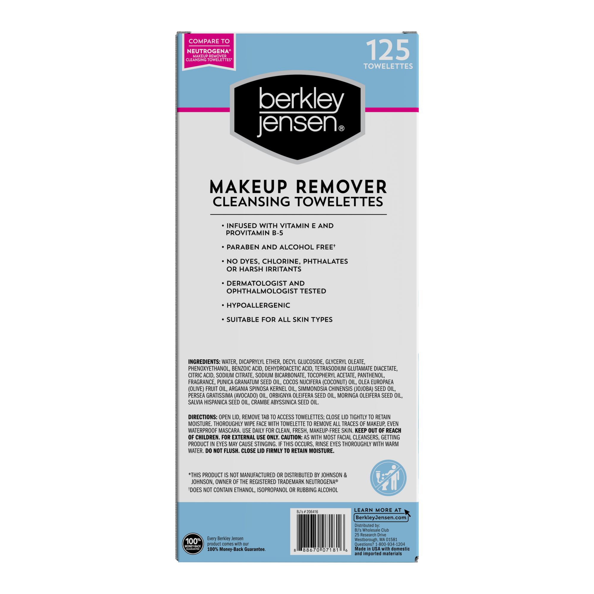 Unique to BJ's Removes makeup even waterproof mascara 99% Naturally Derived Ingredients Formulated with rich antioxidants and essential oils No dyes, chlorine, phthalates or harsh irritants Compare to Neutrogena Cleansing Makeup Remover