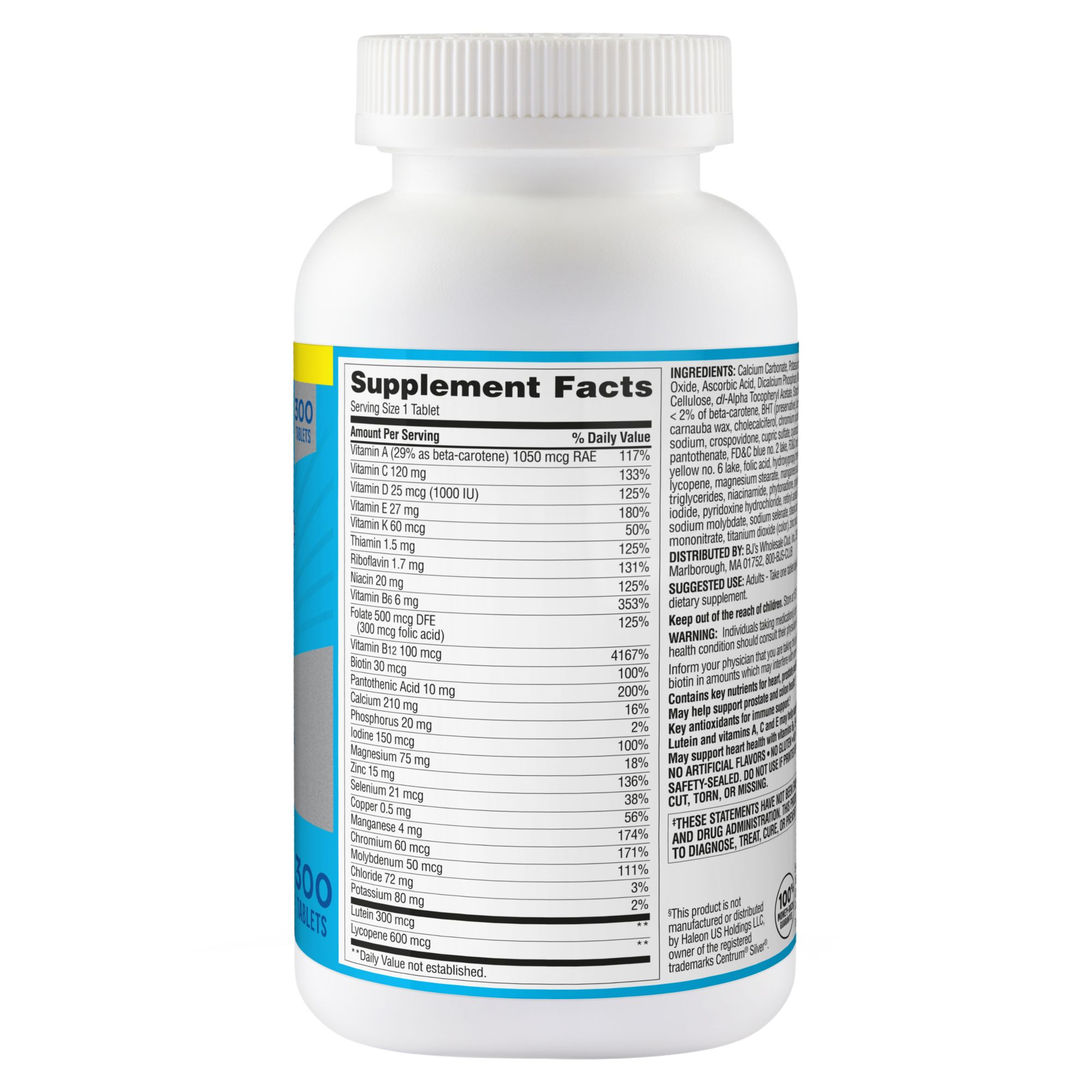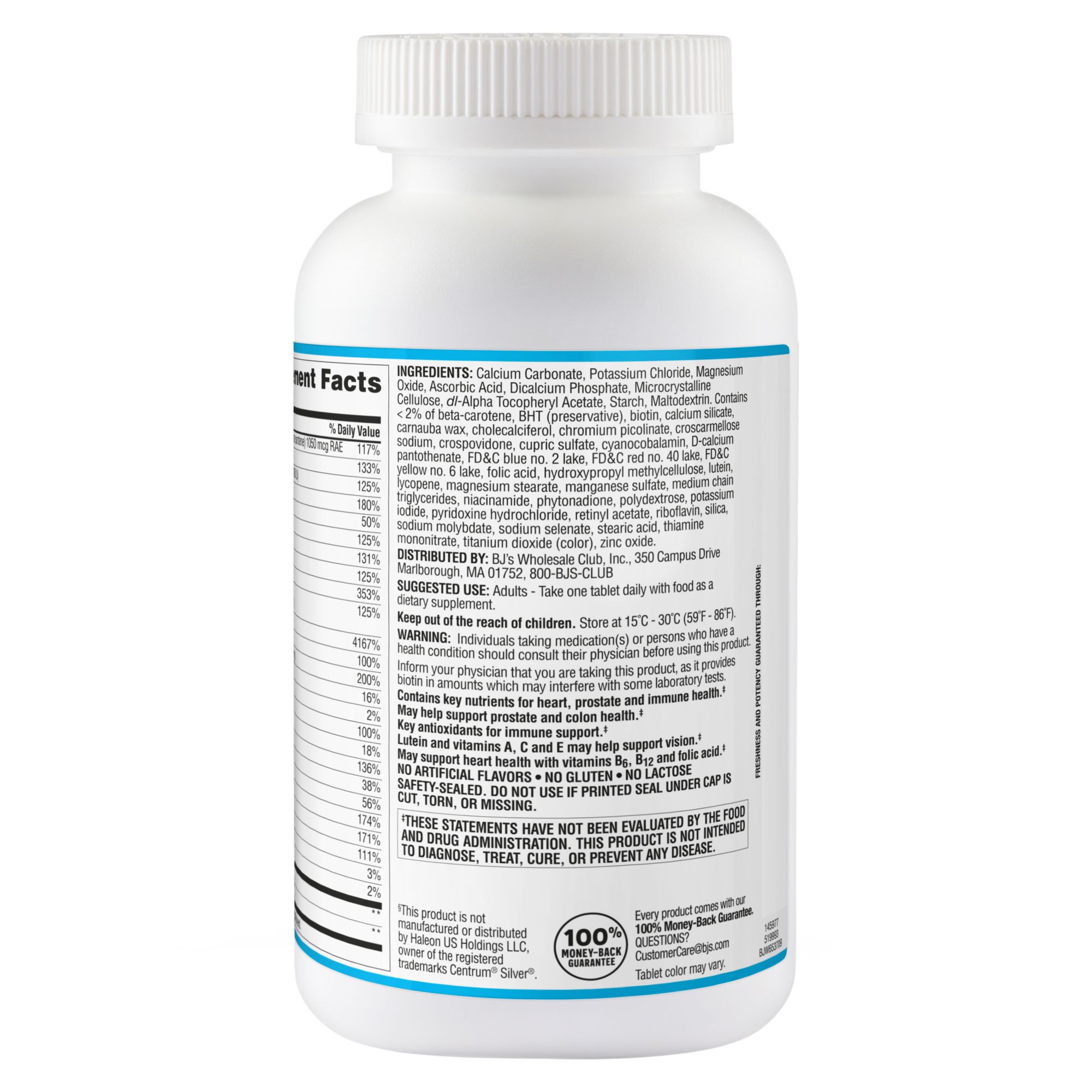 Compare to Centrum Silver Men 50+.§ Contains key nutrients for heart, prostate, and immune health.+ May help support prostate and colon health.+ Key antioxidants for immune support.+ Lutein and vitamins A, C, and E may help support vision.+ May support heart health with vitamins B6, B12 and folic acid.+ §This product is not manufactured or distributed by Haleon US Holdings LLC, owner of the registered trademarks Centrum Silver. +These statements have not been evaluated by the Food and Drug Administration. This product is not intended to diagnose, treat, cure, or prevent any disease.
