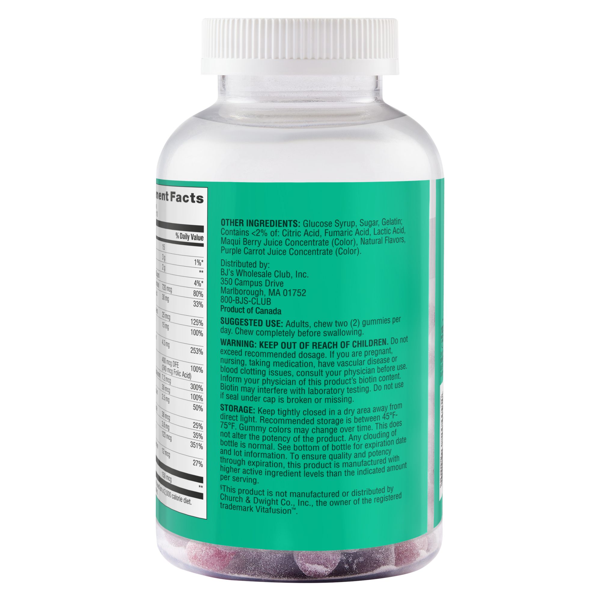 Product Warnings and Restrictions: Warning: Keep Out Of Reach Of Children. Do Not Exceed Recommended Dosage. If You Are Pregnant Or Nursing, Have A Medical Condition, Or Are Taking Any Prescription Medications, Especially Anticoagulants, Consult A Physician Before Use. Vitamin E Can Antagonize The Effect Of Anticoagulants, Including Warfarin. Inform Your Physician Of This Product’s Biotin Content. Biotin May Interfere With Laboratory Testing. Do Not Use If The Seal Under The Cap Is Broken Or Missing. Storage: Keep Tightly Closed In A Dry Area Away From Direct Light. Recommended Storage Is Between 45°F-75°F. Gummy Colors May Change Over Time. This Does Not Alter The Potency Of The Product. Any Clouding Of The Bottle Is Normal. See Bottom Of Bottle For Expiration Date And Lot Information. To Ensure Quality And Potency Through Expiration, This Product Is Manufactured With Higher Active Ingredient Levels Than The Indicated Amount Per Serving.