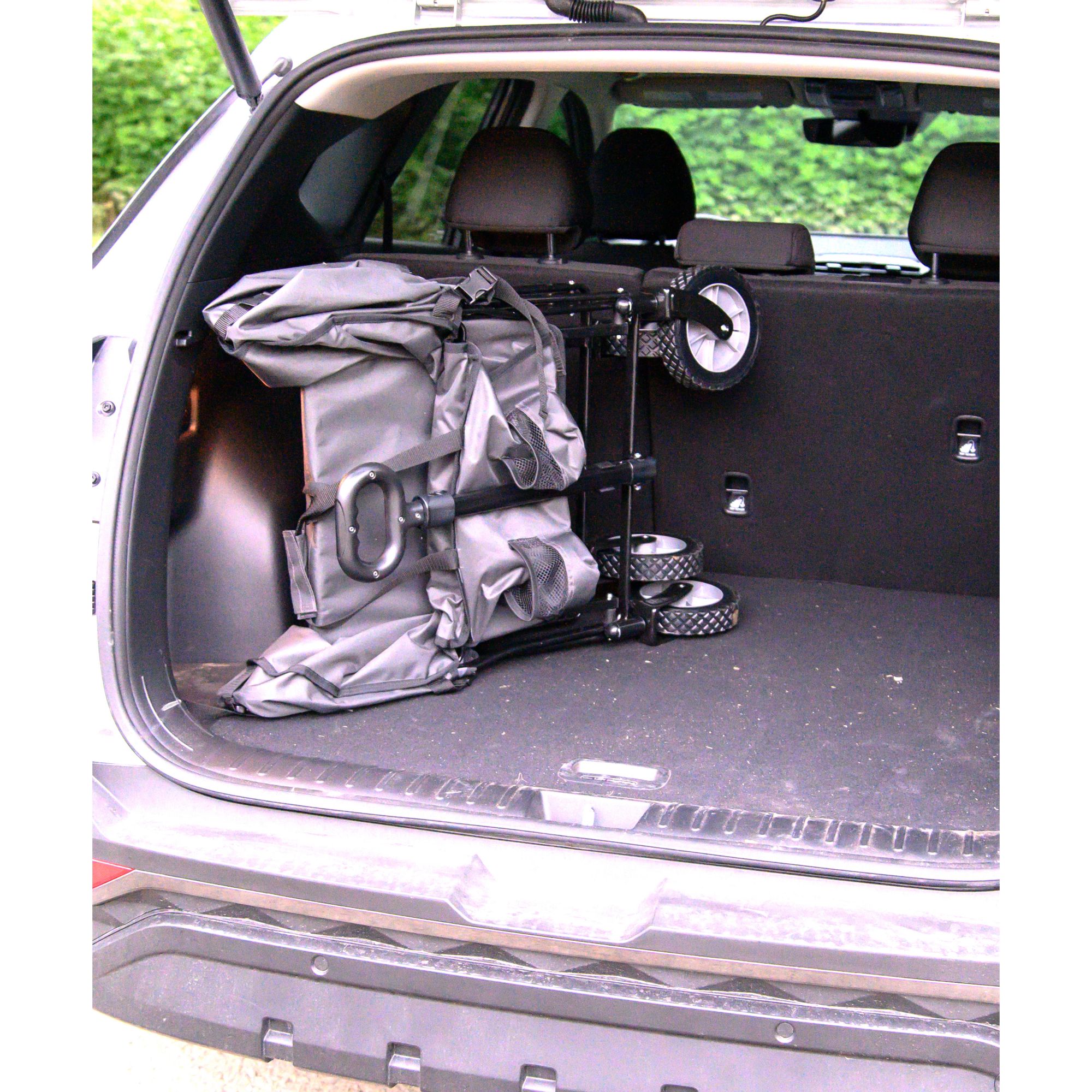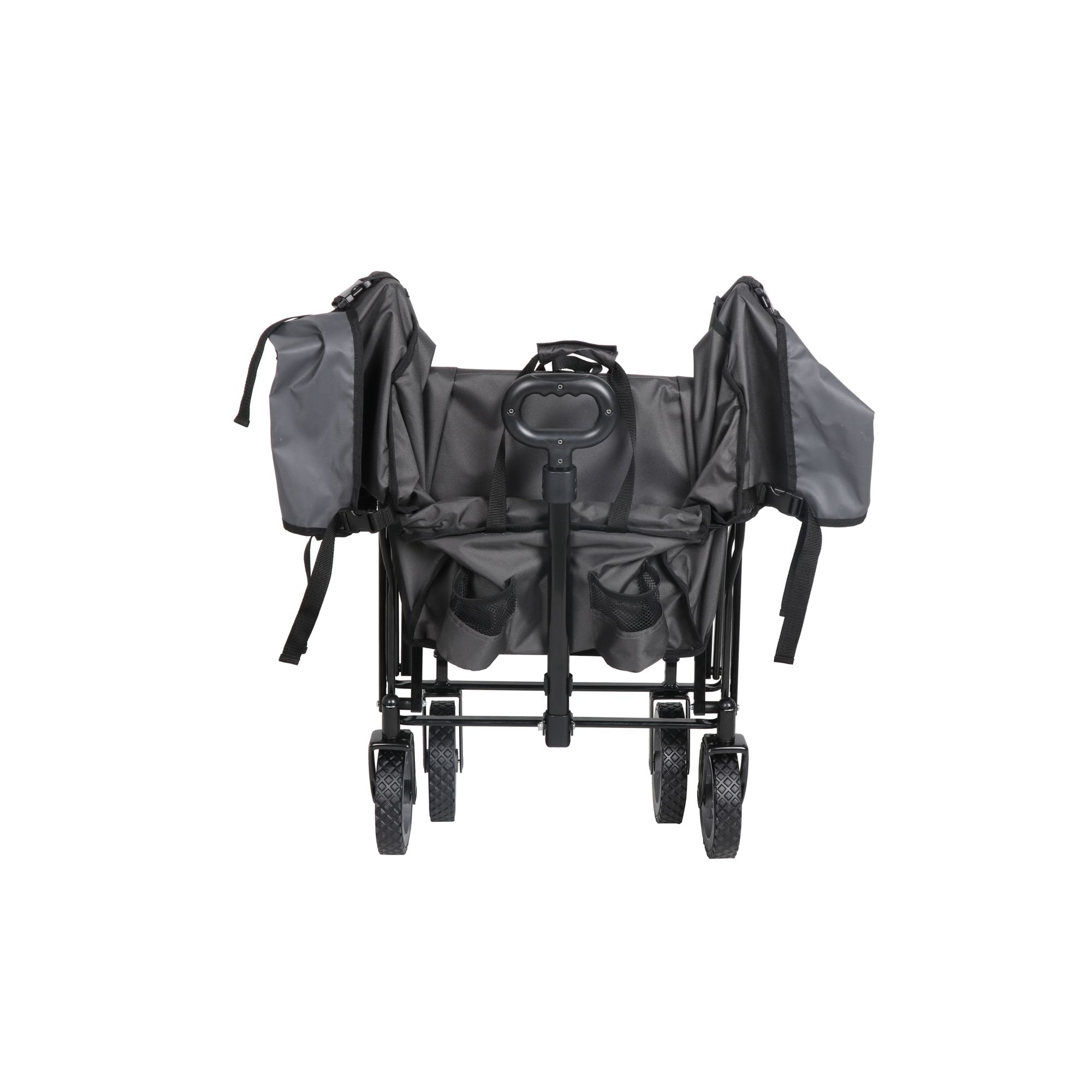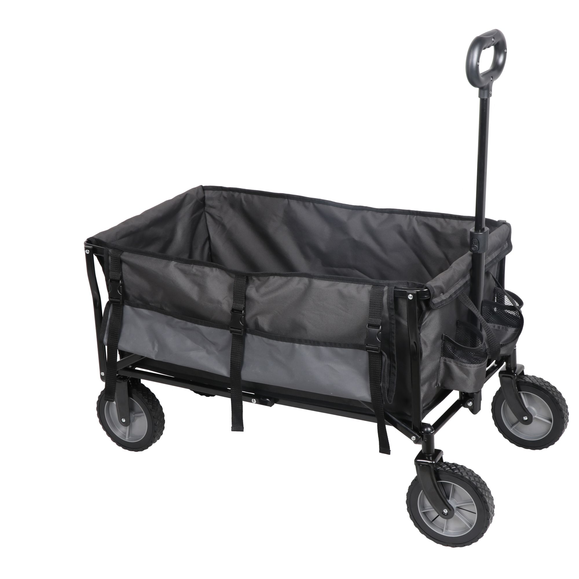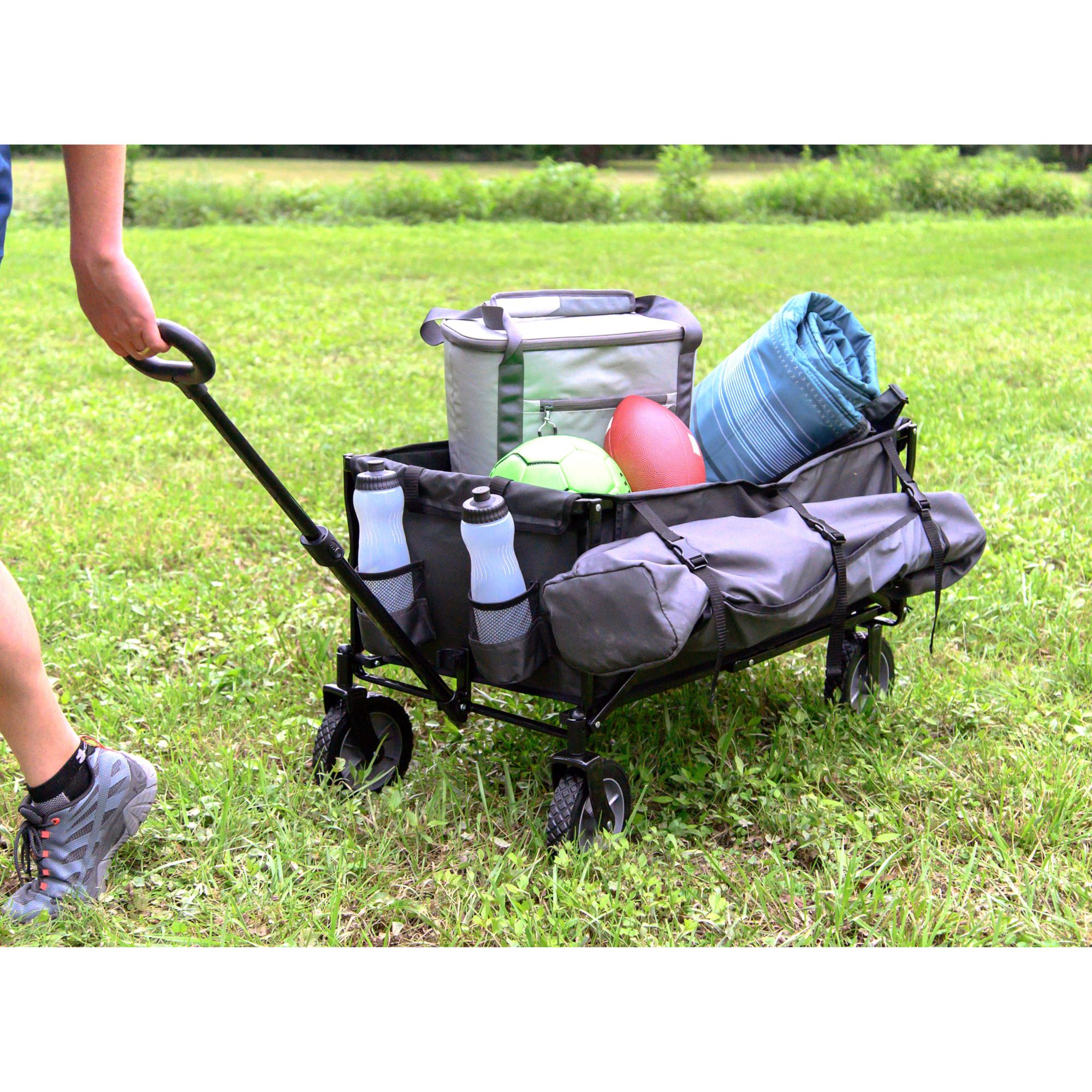 This folding cart has built-in chair holders, cupholders and can carry up to 180 lbs. of gear, groceries or other cargo. It's great for sporting events, picnics, camping or even shopping.