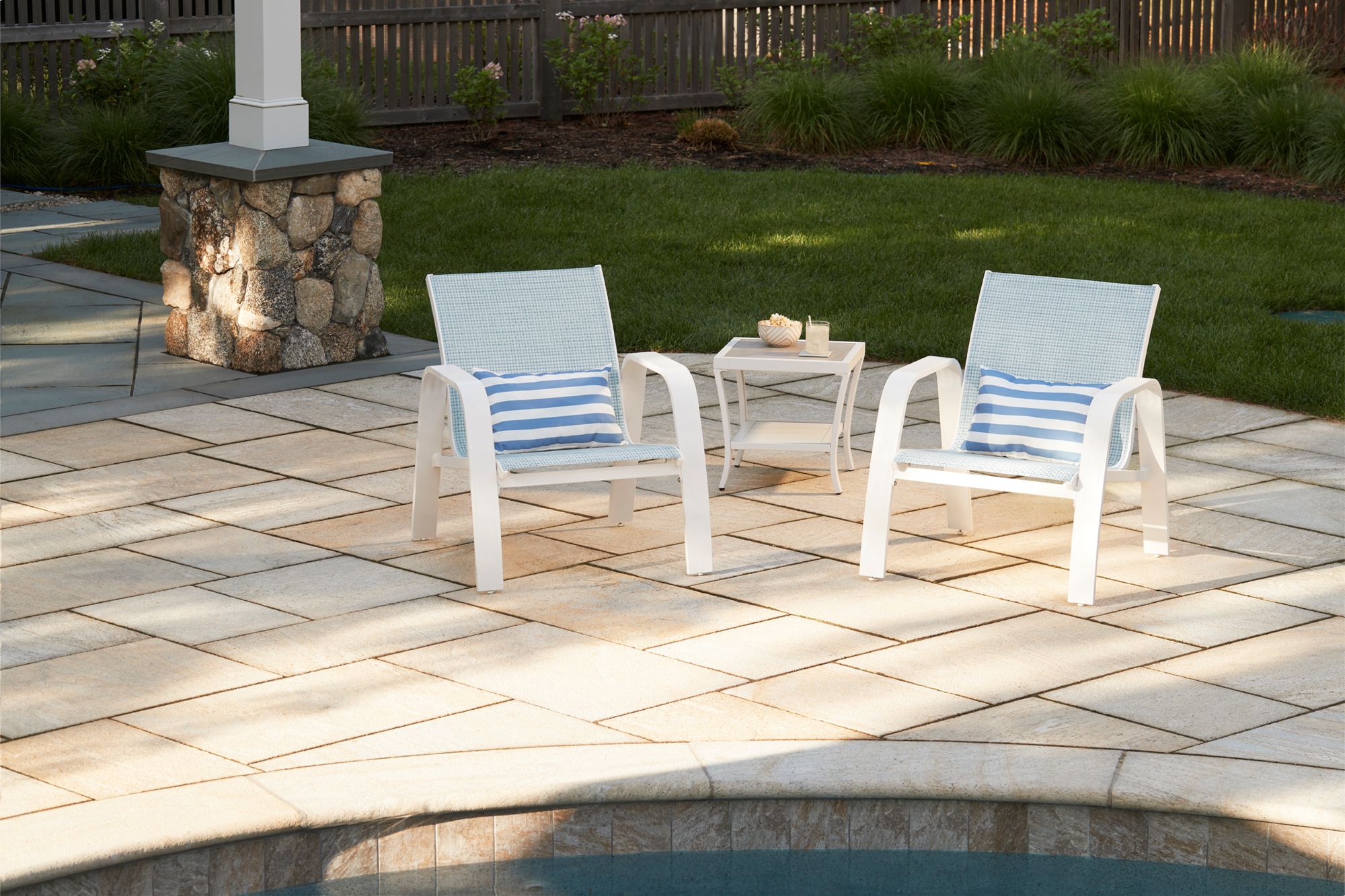 Each chair features Phifer sling fabric, known for its carefree maintenance and durability