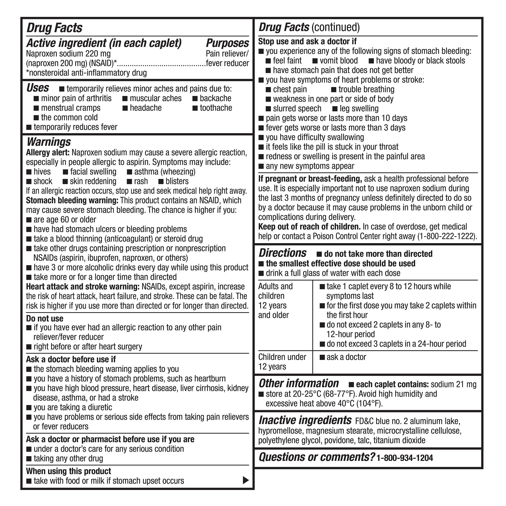 Contains 220mg of naproxen sodium and may cause a severe allergic reaction in people allergic to aspirin