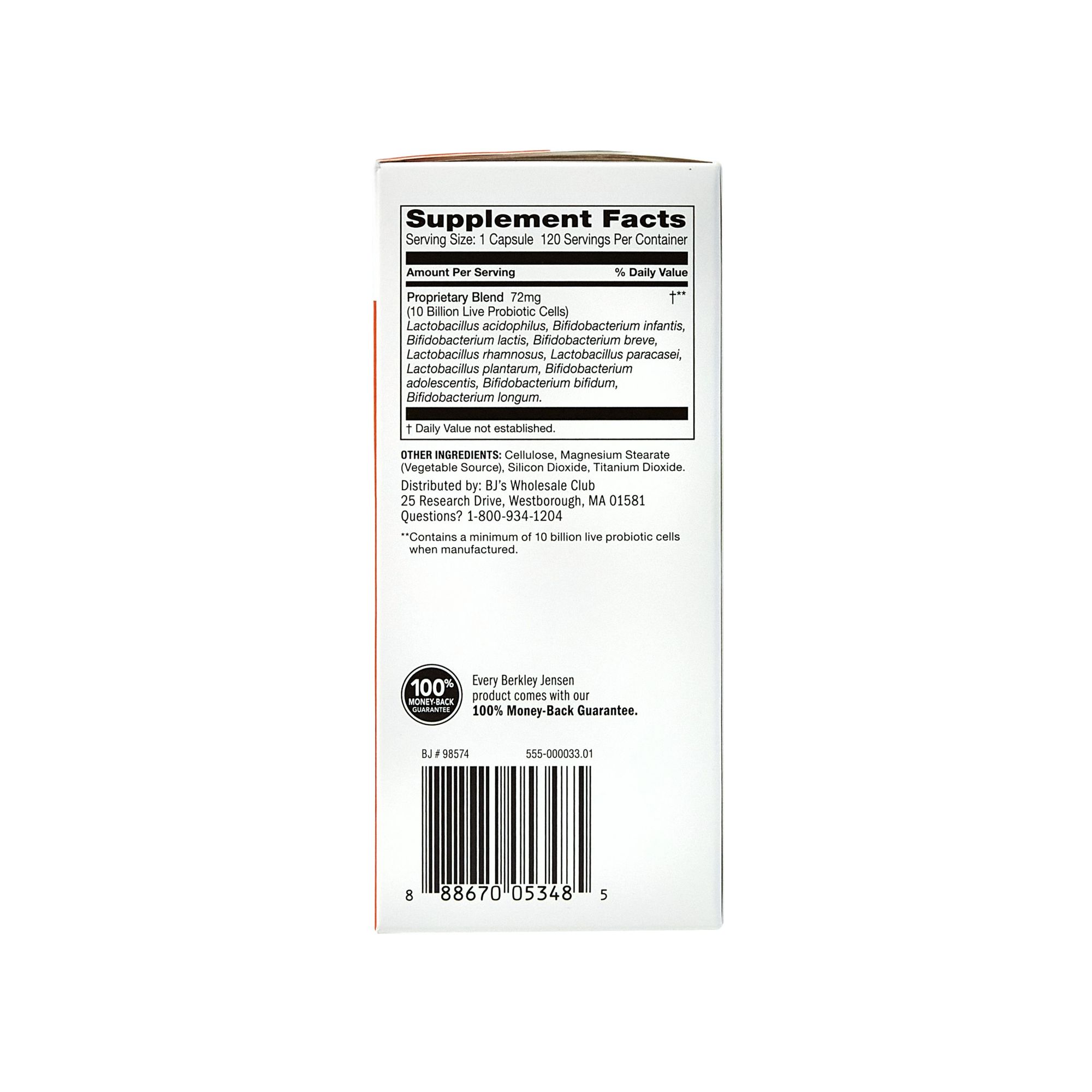 Berkley Jensen Natural 10-Strain Probiotic Dietary Supplement, 120 ct.