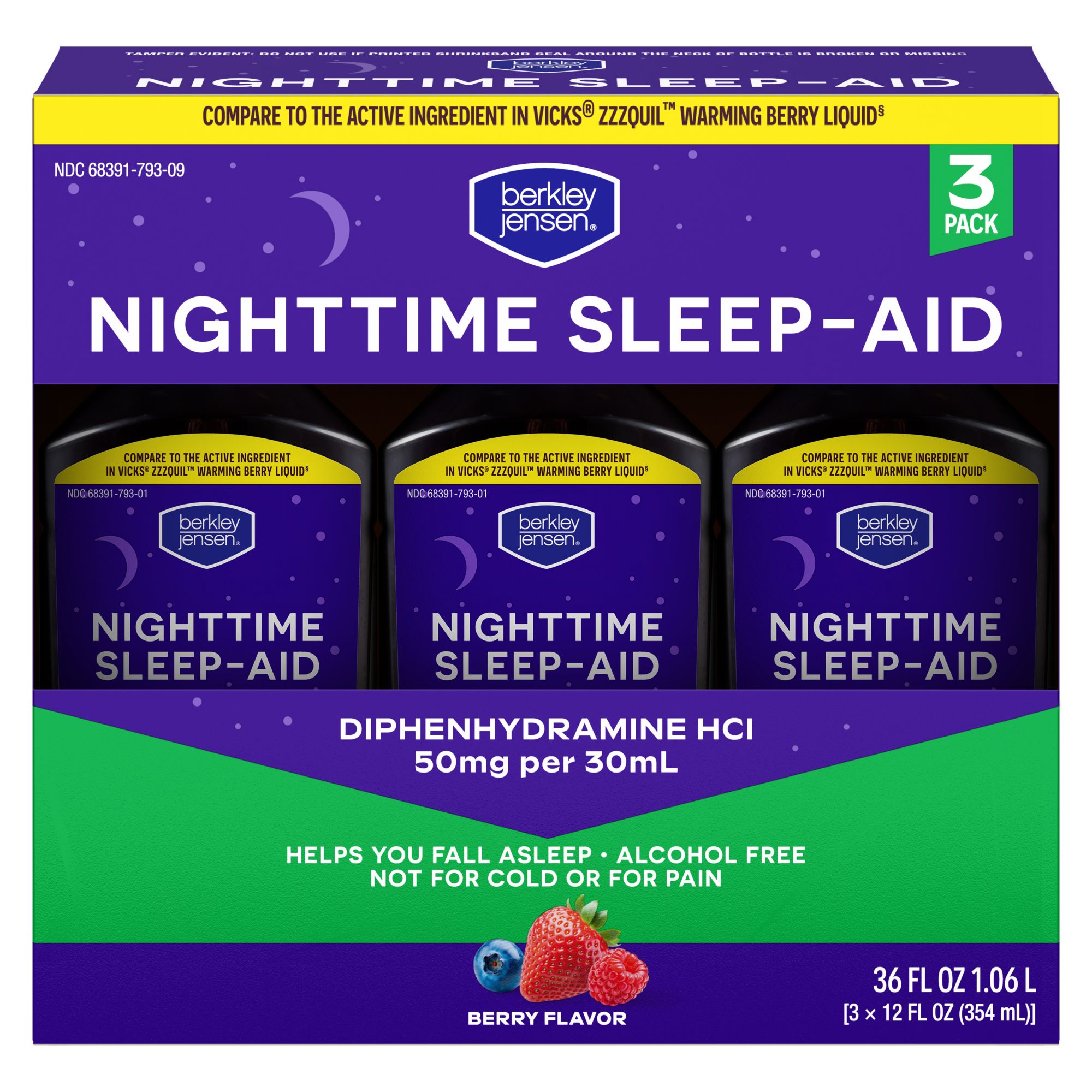 Berkley Jensen Night Time Sleep Aid Diphenhydramine HCl 50mg Liquid, 3 pk./12 fl. oz.