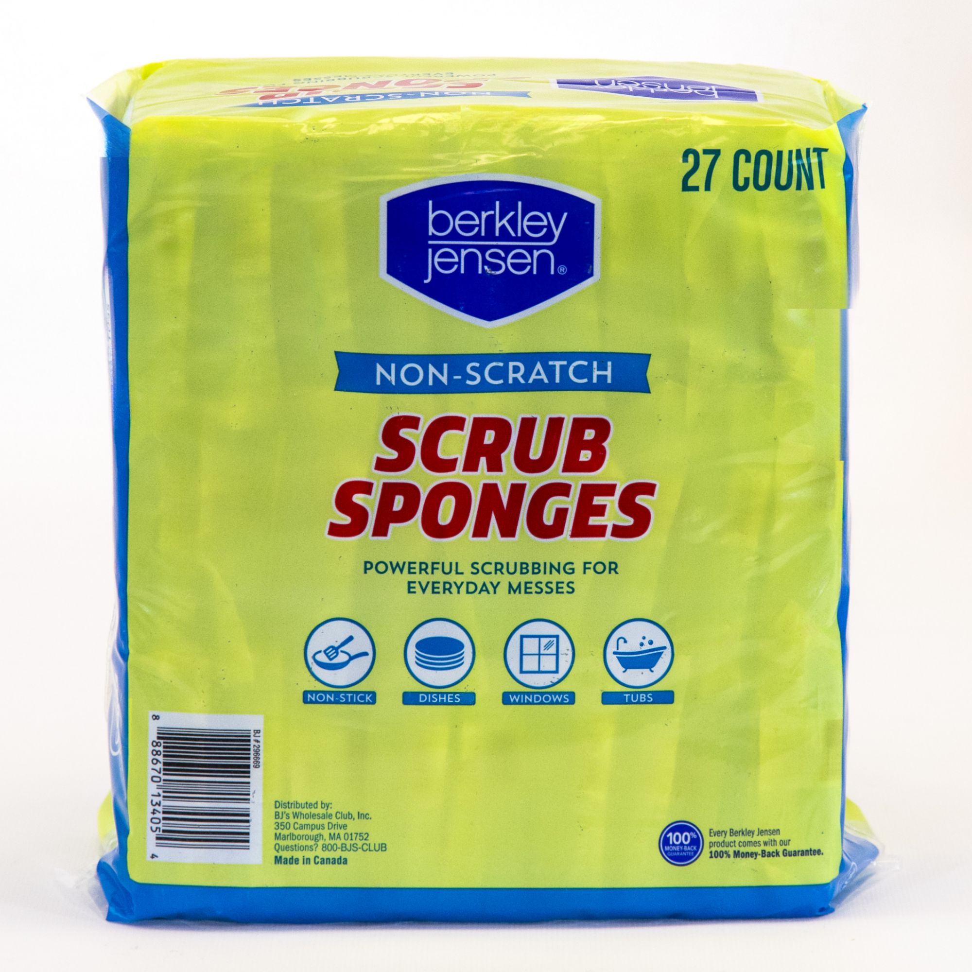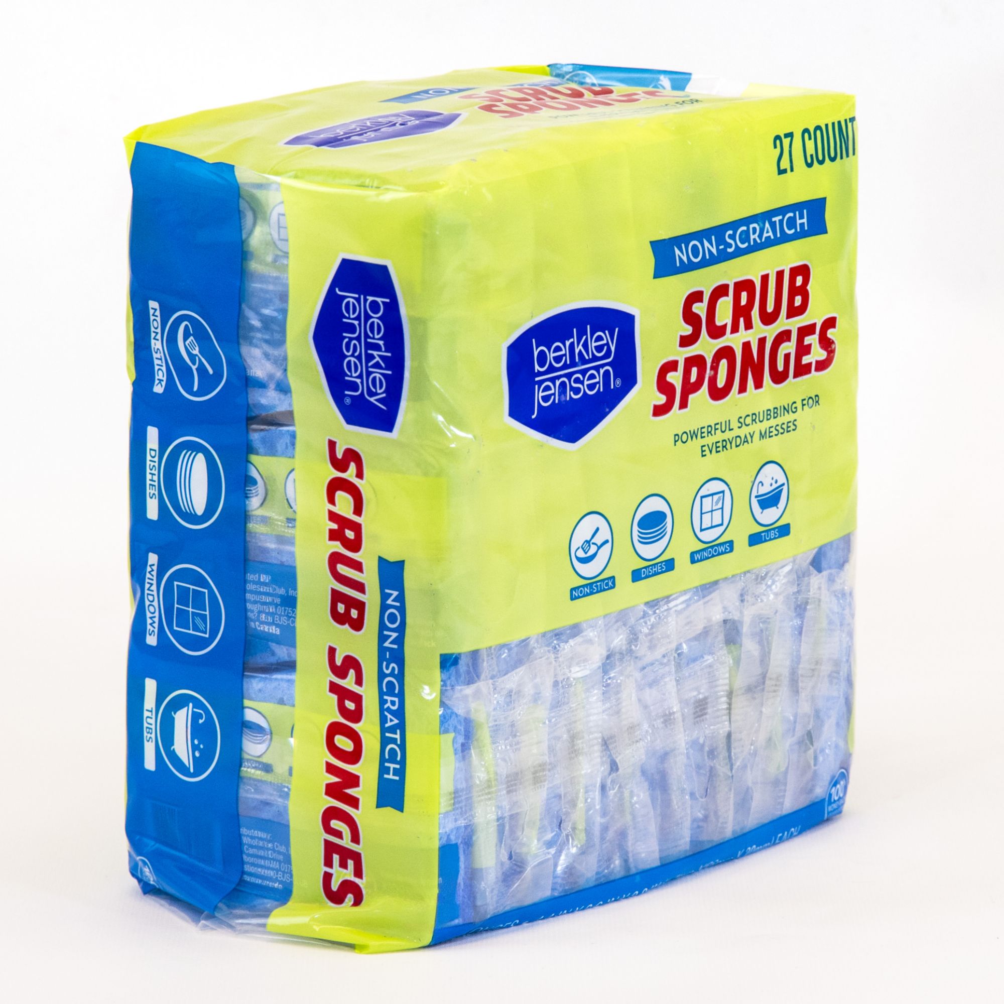 These Berkley Jensen Non Scratch Cellulose Scrub Sponges pair perfectly with your favorite dish soap, and are an essential cleaning accessory in every kitchen. The dual sided scour sponge scrubs baked-on messes without scratching. Ideal for non-stick pans, glassware, countertops, and more while the soft cellulose sponge washes and wipe away dirt and grime clean. Suitable for use with most household cleaners and perfect for tough jobs all around the house, including bathroom sinks, tubs, showers and more.