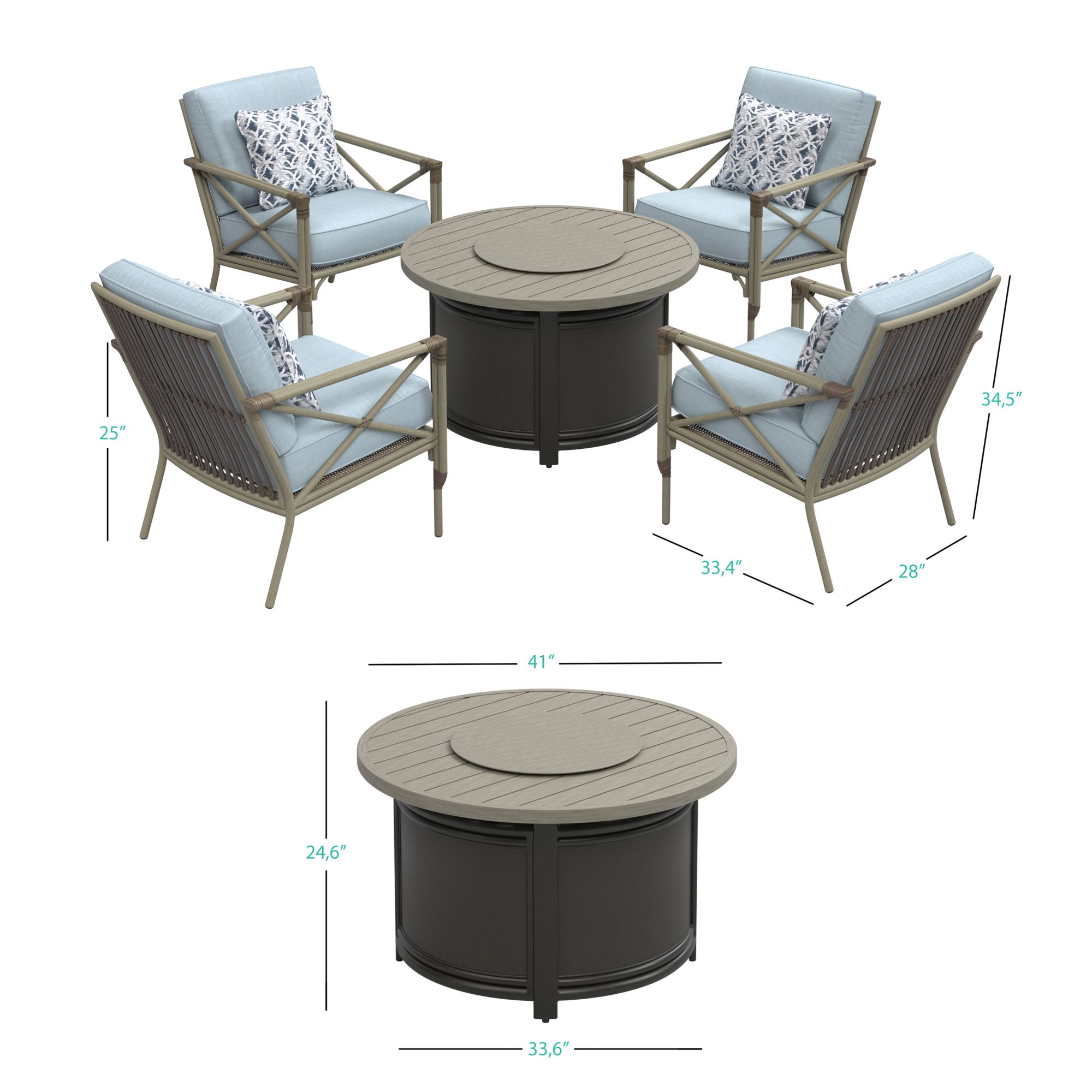 Berkley Jensen Outdoor Patio 5-Pc. Havana Fire Chat Set - Light Blue