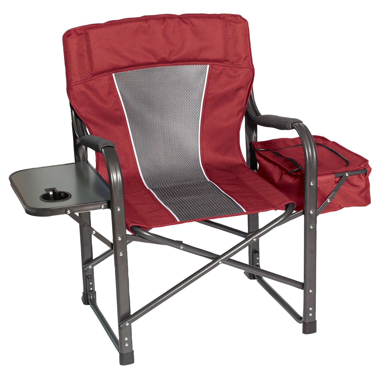 The Berkely Jensen director's chair is the perfect chair for camping, picnics, riving, or home. A sturdy yet lightweight frame will provide years of comfort. Convenient snack side table and 12 can side cooler to store all your food and beverage. Folds flat for easy transport and storage.