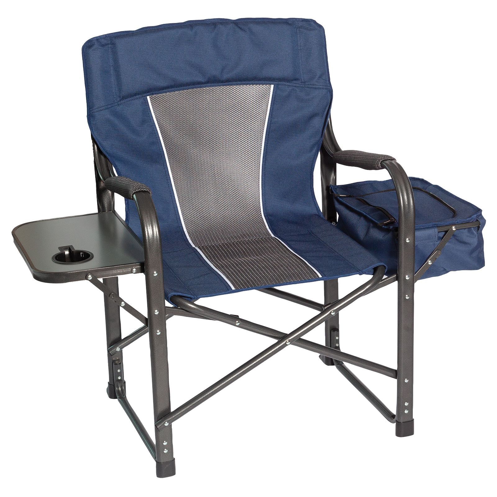 The Berkely Jensen director's chair is the perfect chair for camping, picnics, riving, or home. A sturdy yet lightweight frame will provide years of comfort. Convenient snack side table and 12 can side cooler to store all your food and beverage. Folds flat for easy transport and storage