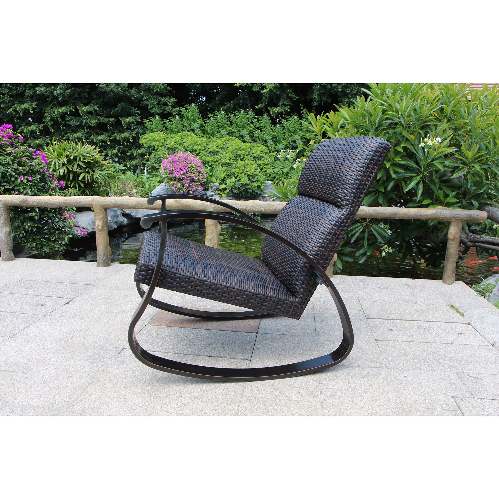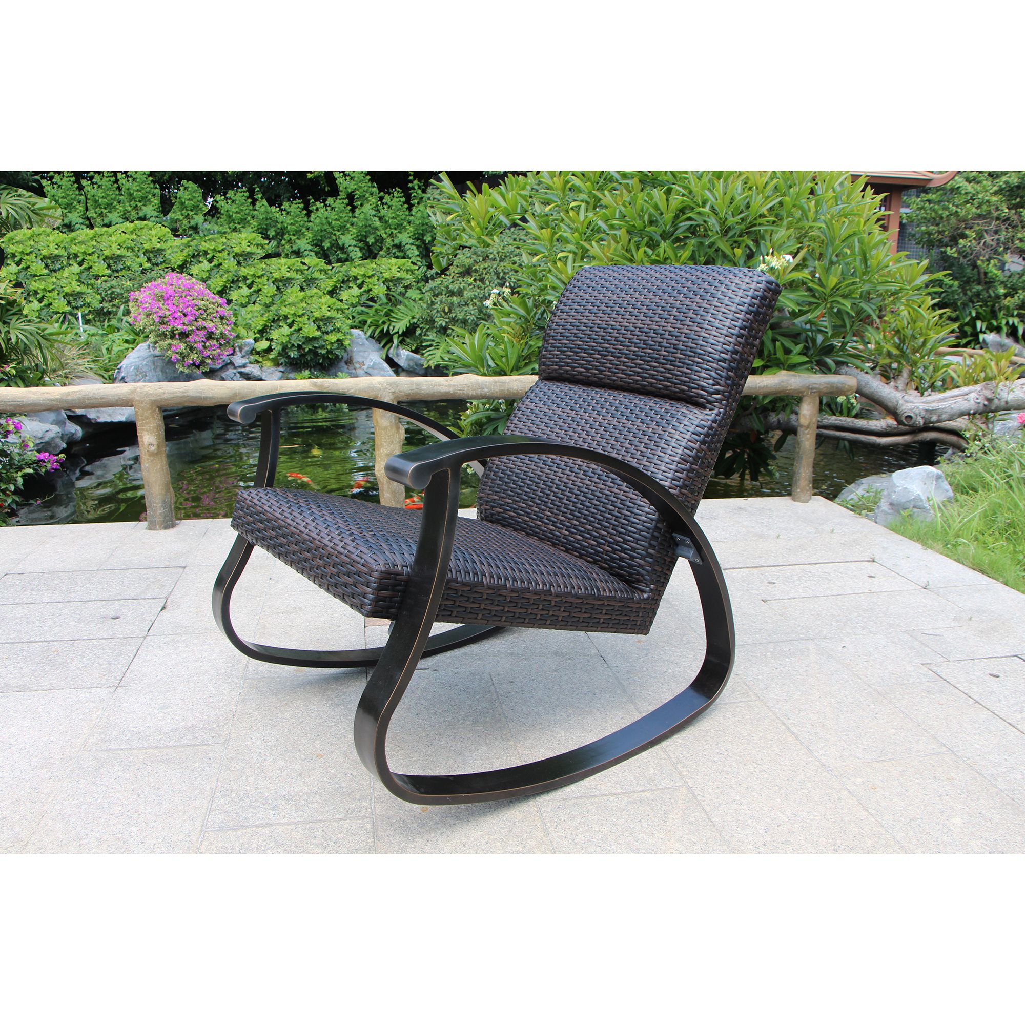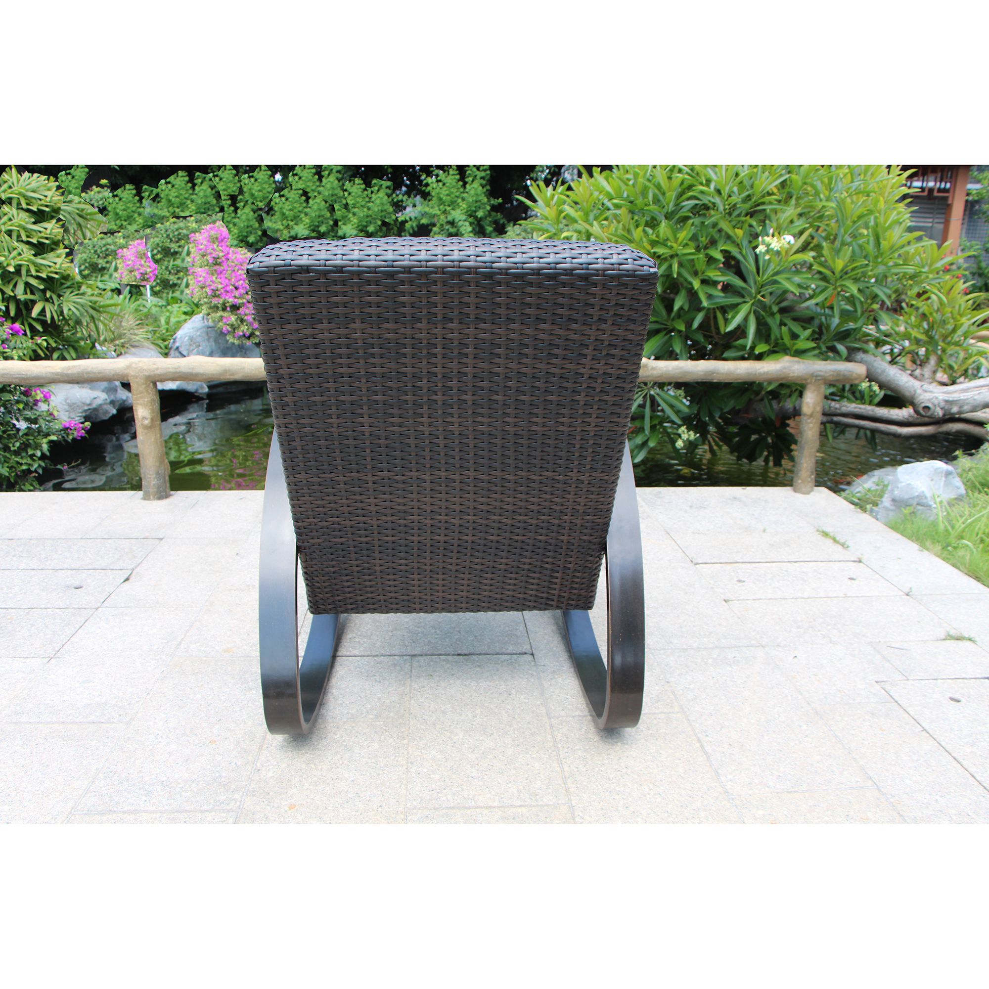 Perfect for relaxing in the summer sun, this elegant modern design brown rocking chair will compliment any garden, balconies, poolside, patio or any outdoor space. It will offer you and your friends the ultimate outdoor seating experience and enjoy a leisurely afternoon tea time. It is made of rust-resistant and durable aluminum frame and weather resistant PE rattan wicker. This chair has a stylish appearance, and also has excellent weather resistance so that it can be used outdoors for a long time to last through the seasons. The elegant rattan chair has a rocking function, and the modern design for balanced make you feel unprecedented relaxation when sitting on it. This outdoor chair has a super thick padded quick dry foam seat and a soft padded pillow, when sitting down, make you feel more comfortable. The quick dry foam lets the water flow through freely and therefor the chair will dry up very fast.