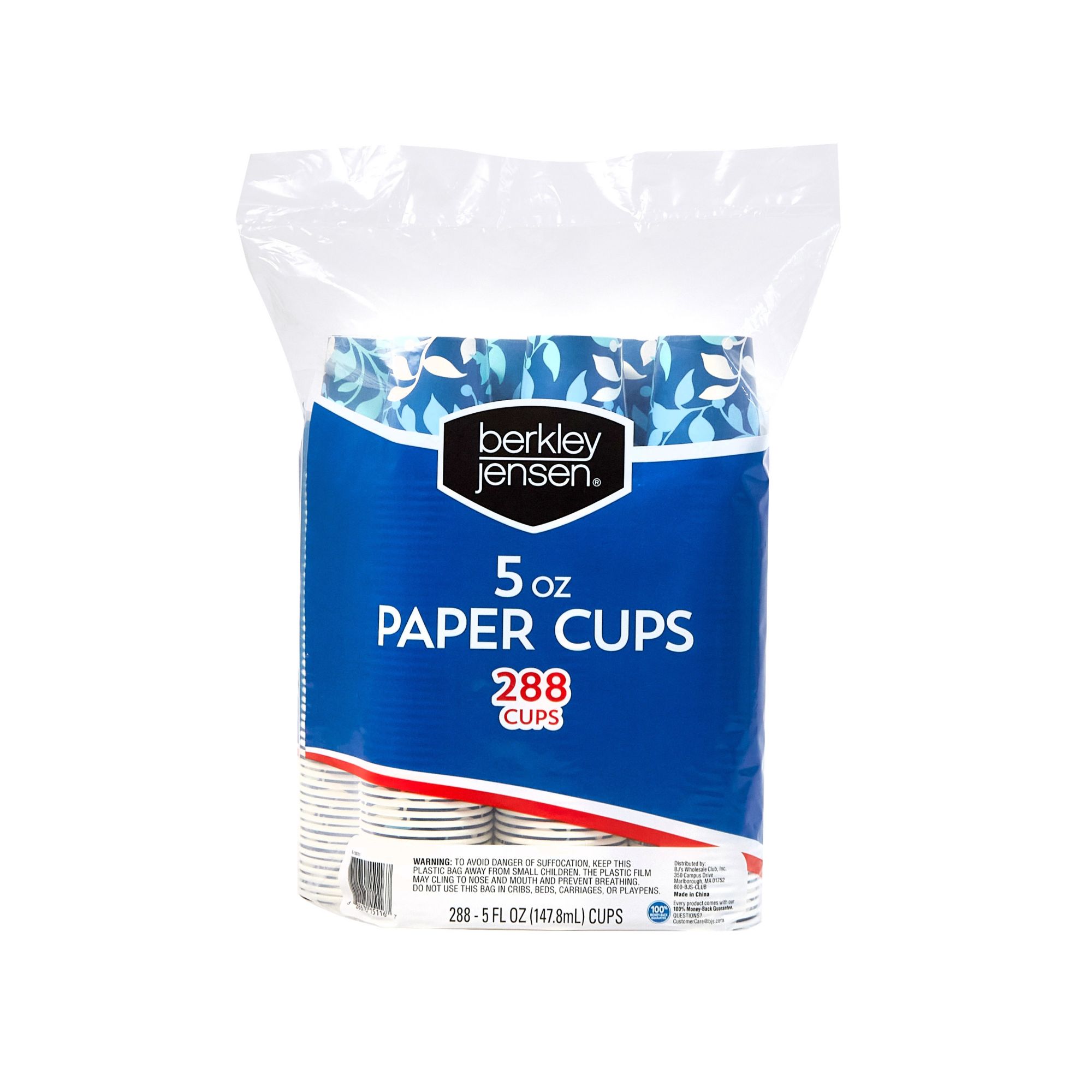 Exclusively at BJ's Cold paper cups Coordinating printed design Perfect size for serving drinks and snacks Great for crafts Good for small item storage Includes Berkley Jensen cups, 5 oz./288 ct.
