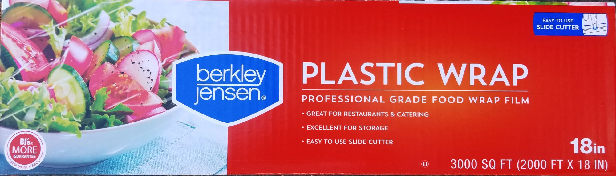 Whether you're reheating food in the microwave or storing leftovers in the freezer, the Berkley Jensen 12" x 3,000' Plastic Film Wrap will be your go-to all-purpose wrap. It keeps food fresh in the fridge and helps prevent freezer burn in the freezer. This plastic film wrap can even be used to cover bowls and cups to prevent spillage.
