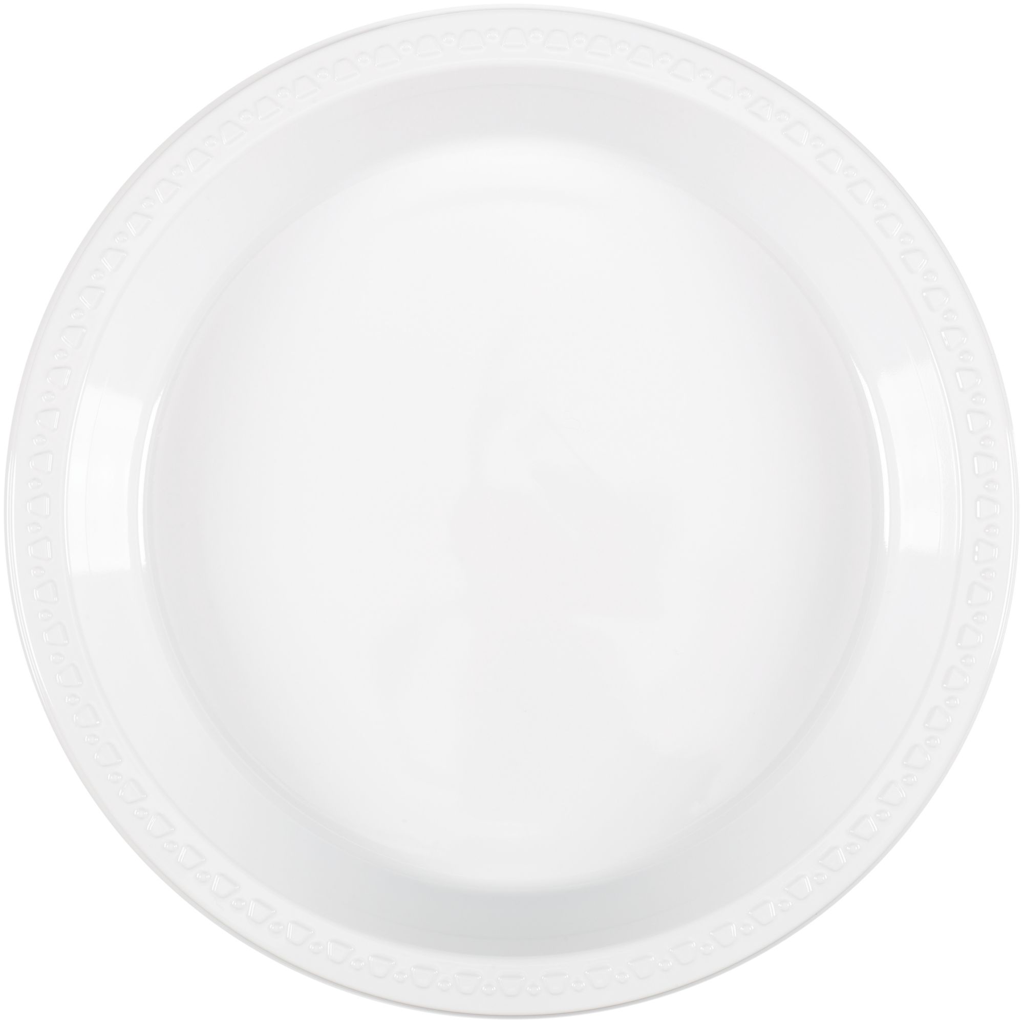 Includes 10" white plastic dinner plates, 80 ct.