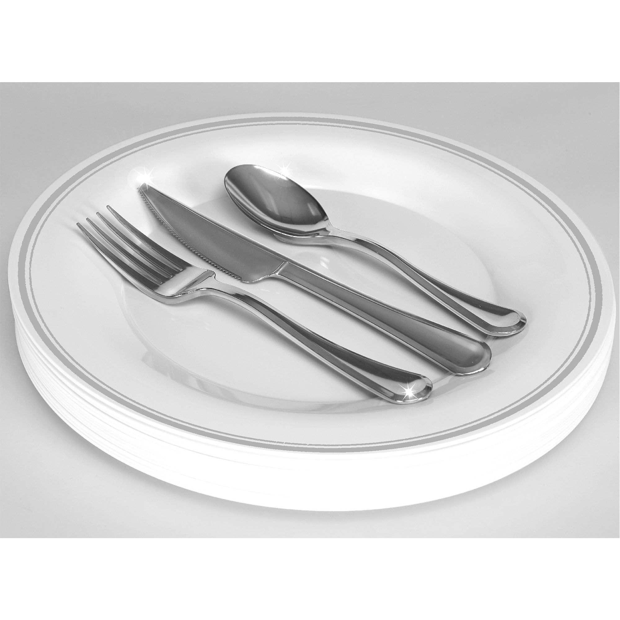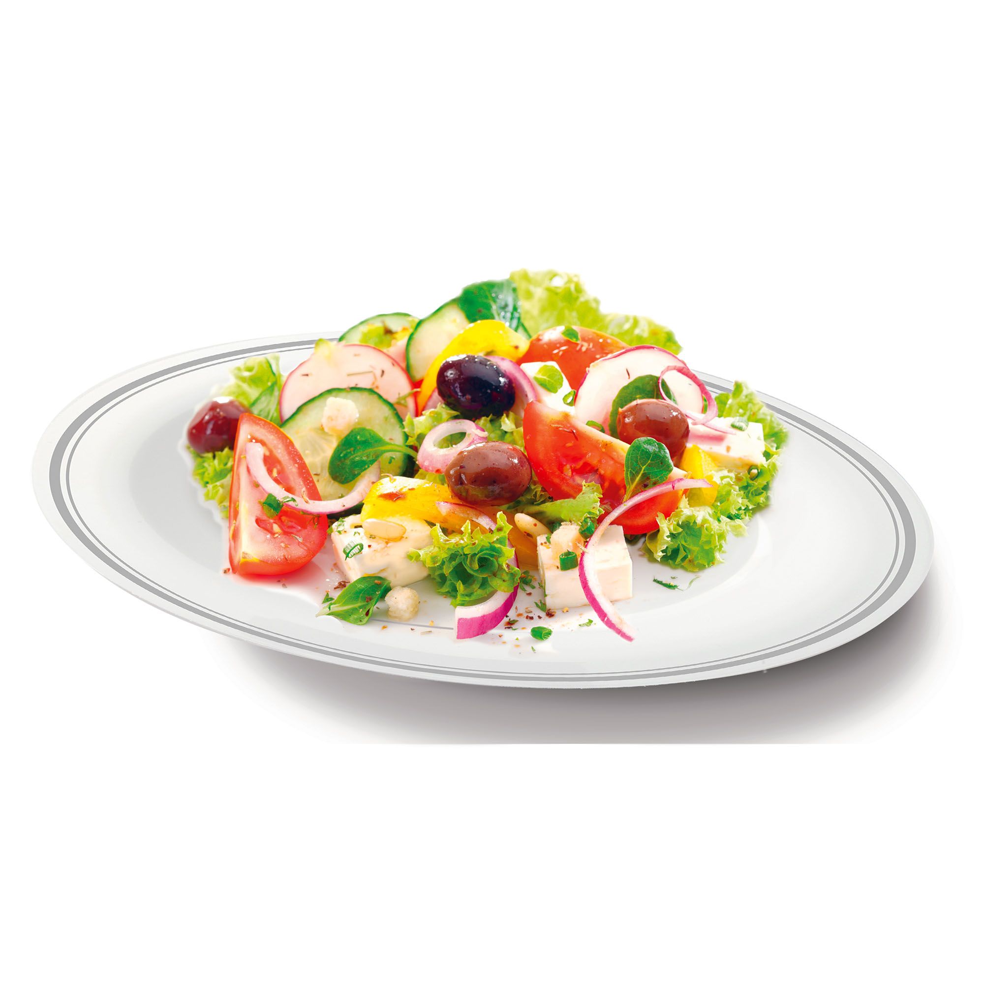 The look of real china and the convenience of single-use Ideal for both formal and informal gatherings with friends and family Sturdy, leak proof and cut resistant 2 sizes ideal for all your entertaining needs: appetizers, salads, desserts or entrees