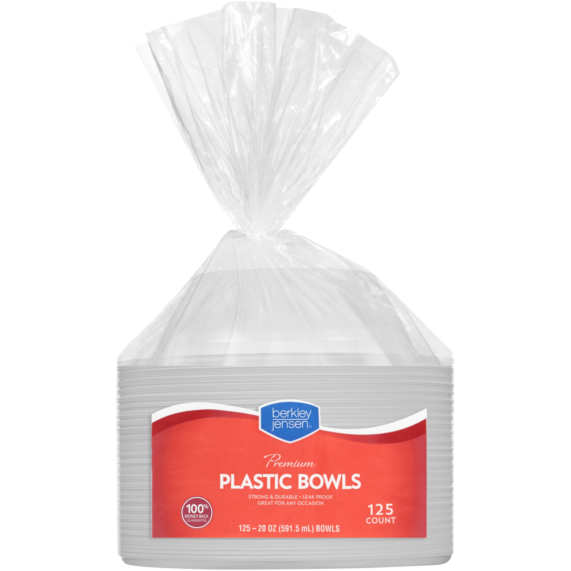 Berkley Jensen 20oz plastic bowls are the perfect choice for your next event. These bowls are leakproof and are perfect for salads and side dishes. This pack includes 125 Berkley Jensen 20 oz. Plastic Bowls.