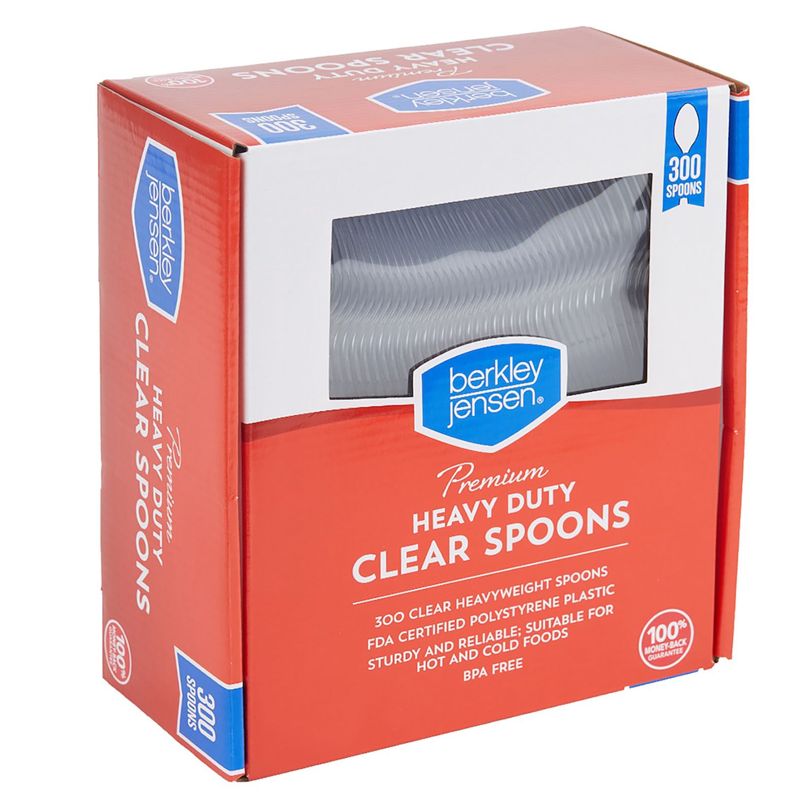 Made of 100% polystyrene Disposable design for easy cleanup Heavyweight plastic spoons ideal for any occasion Suitable for hot and cold food Clear color elegantly styled to match any tableware Full-size for special events and everyday meals Durable design Includes 300 pcs. of heavyweight clear plastic spoons