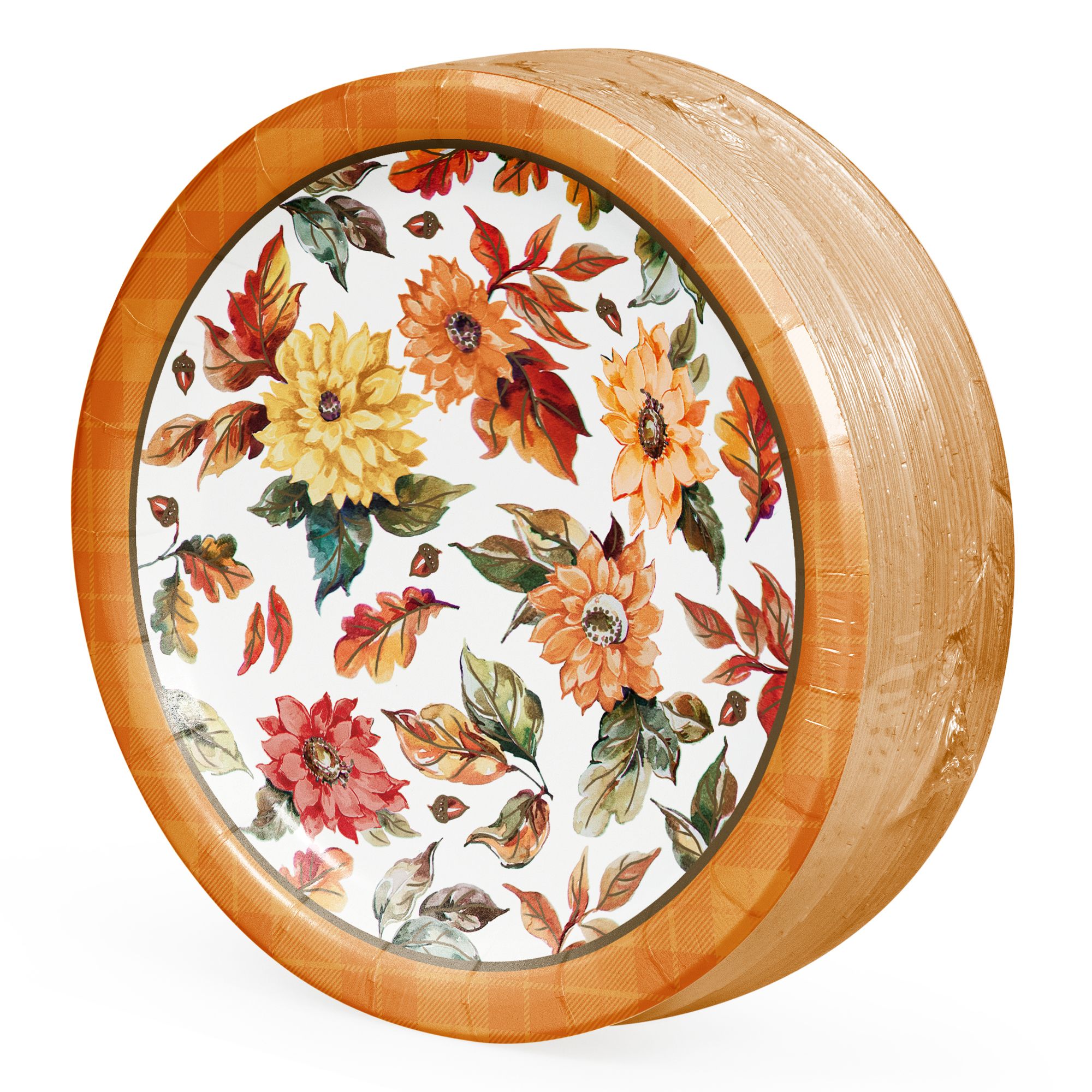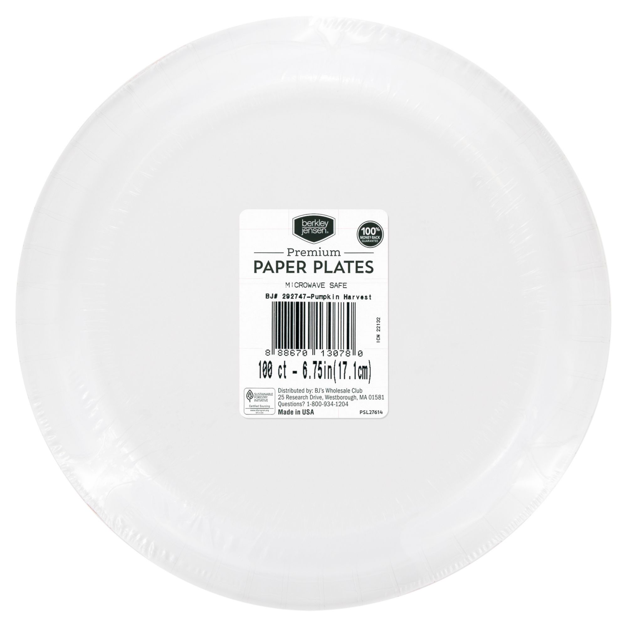 Set the table simply with help from this BJ's exclusive Pumpkin Harvest dessert paper plate. Measuring 7", these versatile paper dessert plates are disposable for easy serving. This beautiful design is perfect for any fall gathering. Sold in packs of 100. Pair this 7" dessert plate with coordinating three-ply Lunch Napkins, 10" x 12" oval platter, or 10.25" paper plates.