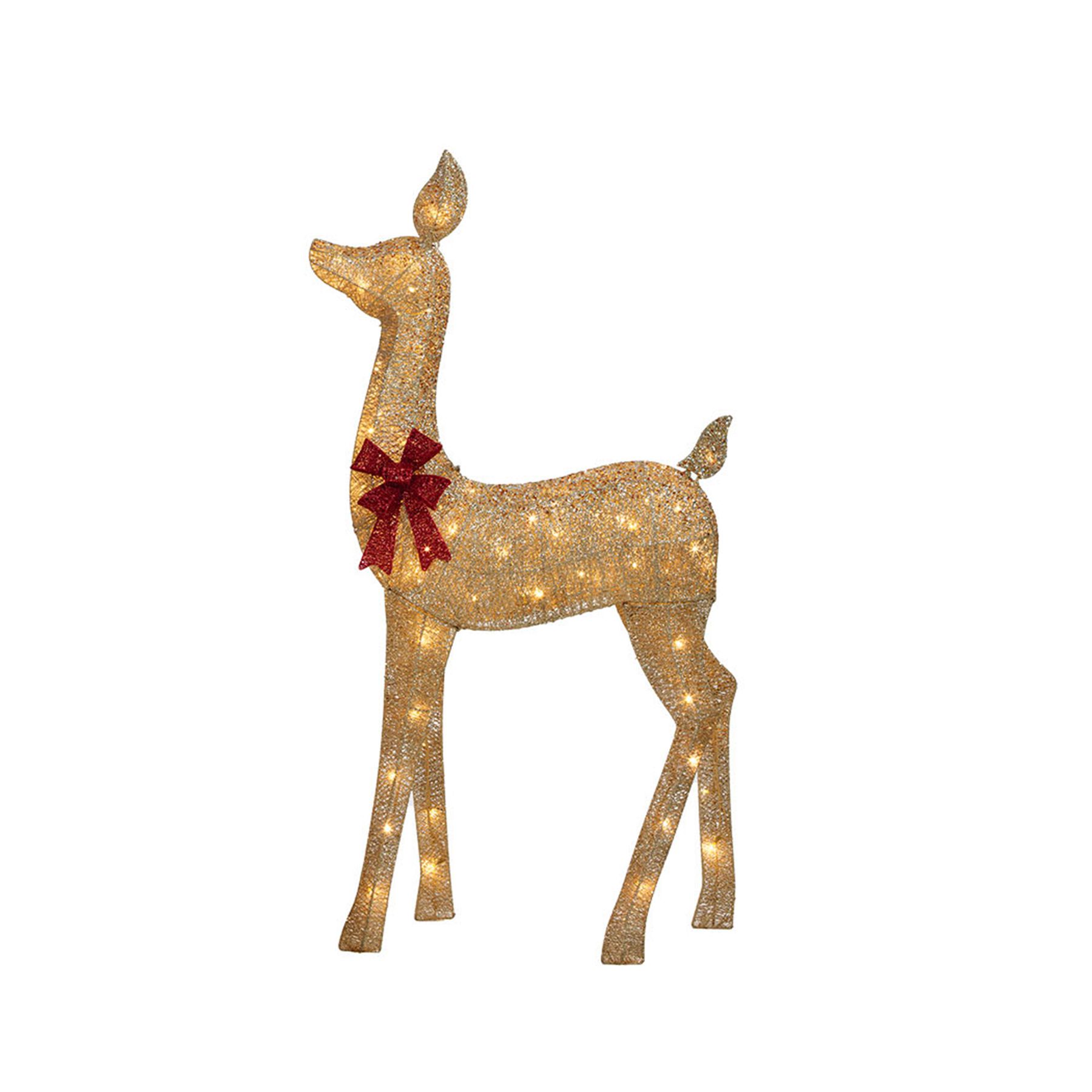 Illuminate your holiday season with our enchanting Set of 3 Random Twinkle LED Glittering Thread Deer Family Sculptures. Perfect for indoor and outdoor use, this exquisite decoration features a coated metal frame adorned with glittering thread, adding a touch of sparkle to any setting. Each sculpture is crafted with meticulous attention to detail and is equipped with 22-Pc. Twinkle LED and 198-Pc. Steady LED. The random twinkle LED lights create a captivating, sparkling effect that will draw admiration from all who see it. For easy setup and secure placement, metal stakes are included, making it simple to create a festive and inviting atmosphere in your yard or home. Transform your space with this stunning deer family sculpture and experience the magic of the holiday season like never before.