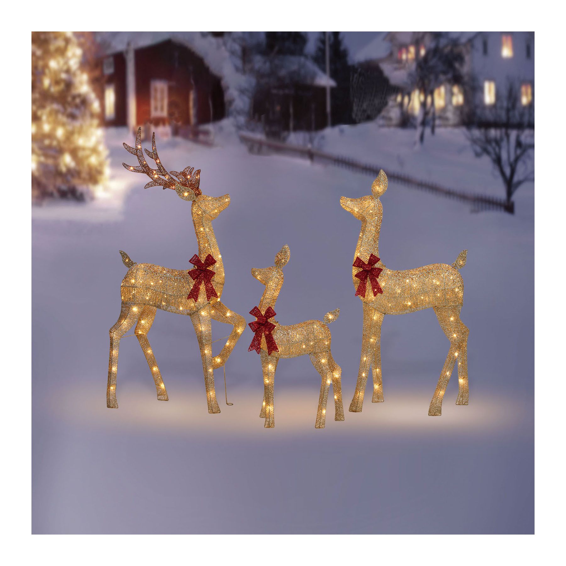 Berkley Jensen Set of 3 Random Twinkle Led Glittering Thread Deer Family Sculpture