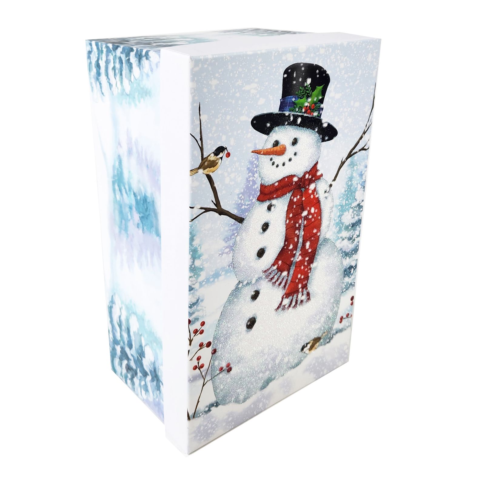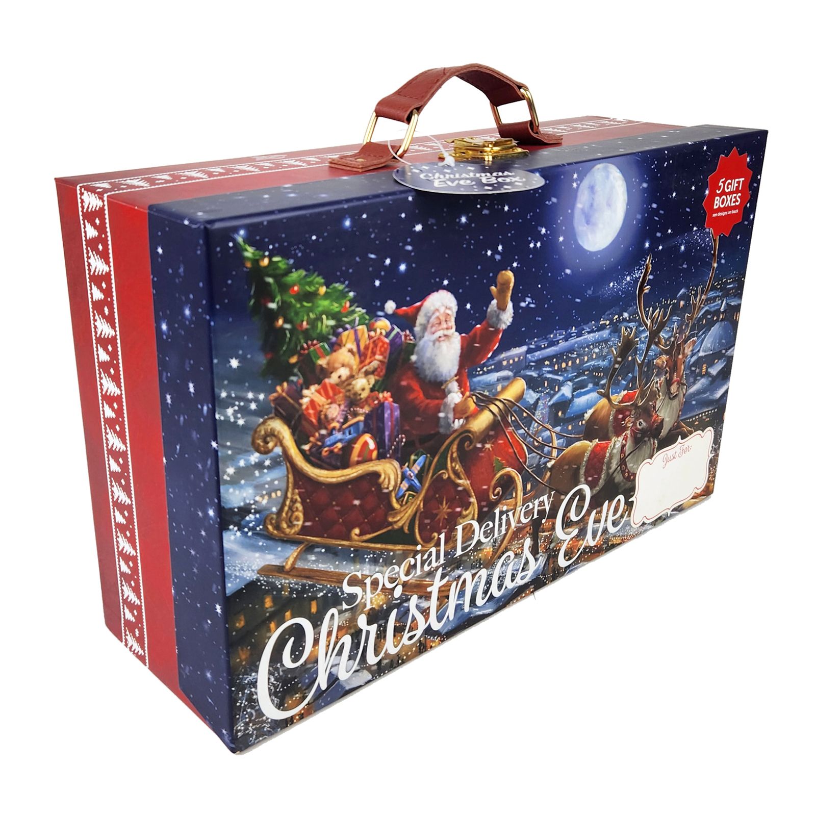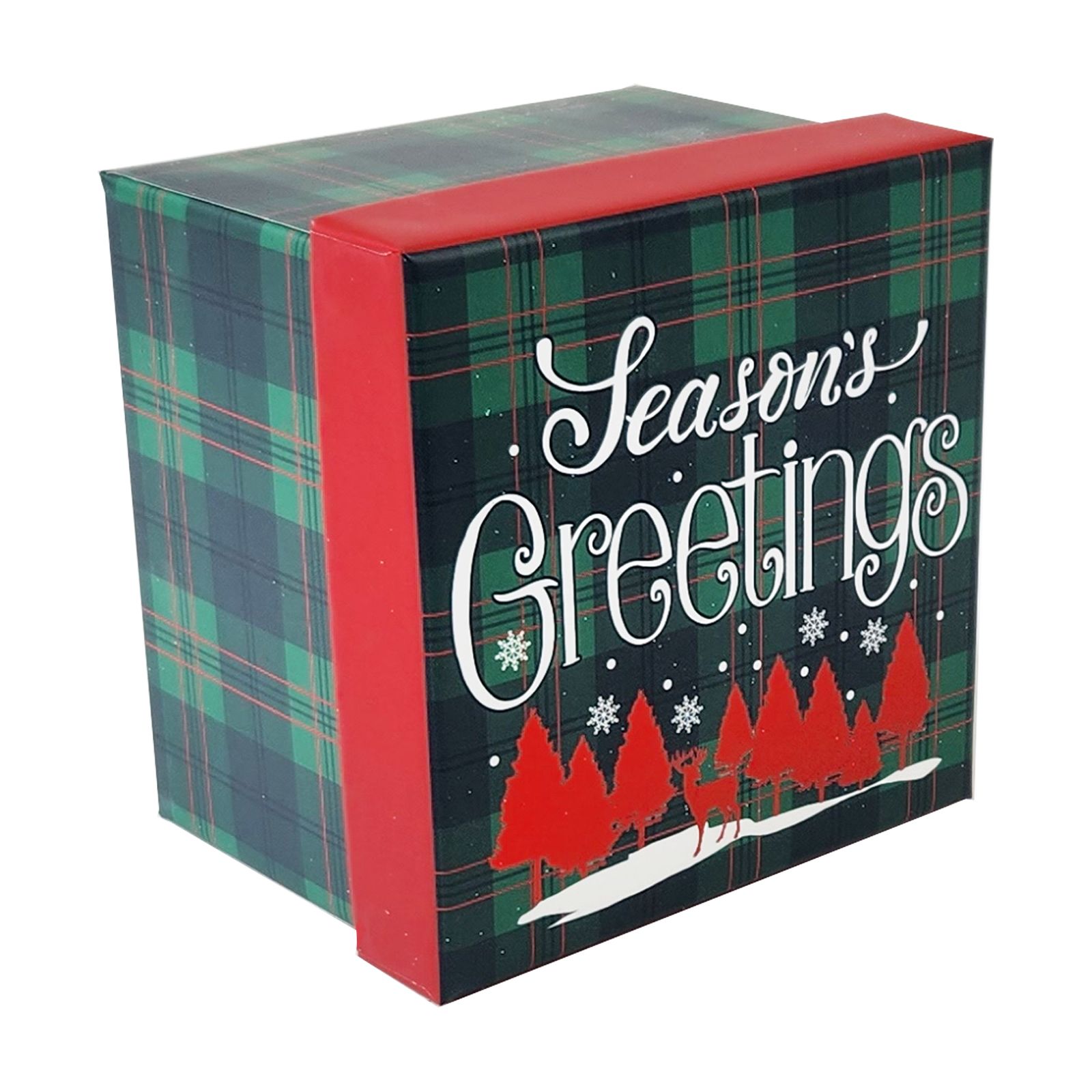 Give your gifts in style this holiday season with the Berkley Jensen 5 Piece Nesting Gift Box set. Each nested set contains (1) suitcase - 15" x 9.5" 5", (1) large rectangle - 11.75" x 7" x 5", (1) medium rectangle - 7.25" x 4.25" x 4", (1) square - 4" x 4" x 3", and (1) cube - 3" x 3" x 3". Each box showcases a fun, traditional Christmas design that people of all ages will enjoy. Use each box individually or stack multiple boxes to create a spectacular gift box tower.