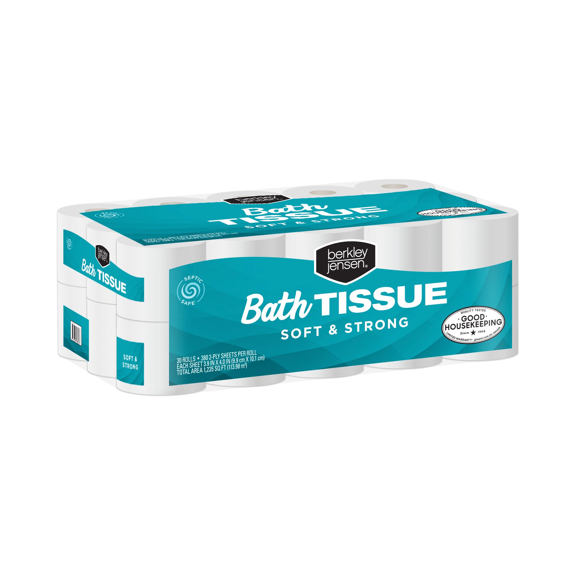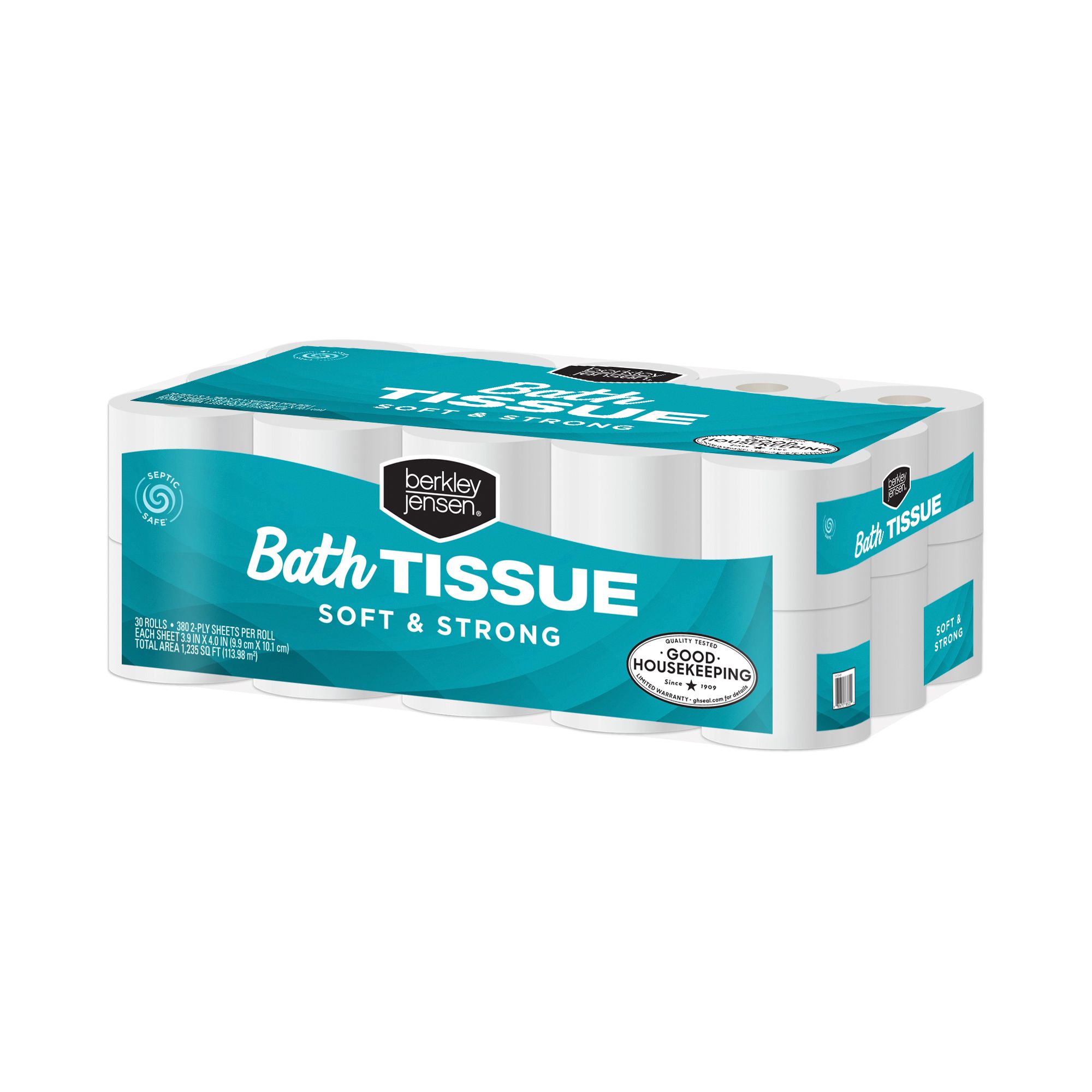 Berkley Jensen two-ply bath tissue is soft, absorbent, strong and septic safe. And because it comes in a 30-roll package of 380-sheet rolls, it’s a great value that helps ensure you never run out. This value pack is also Good Housekeeping approved.