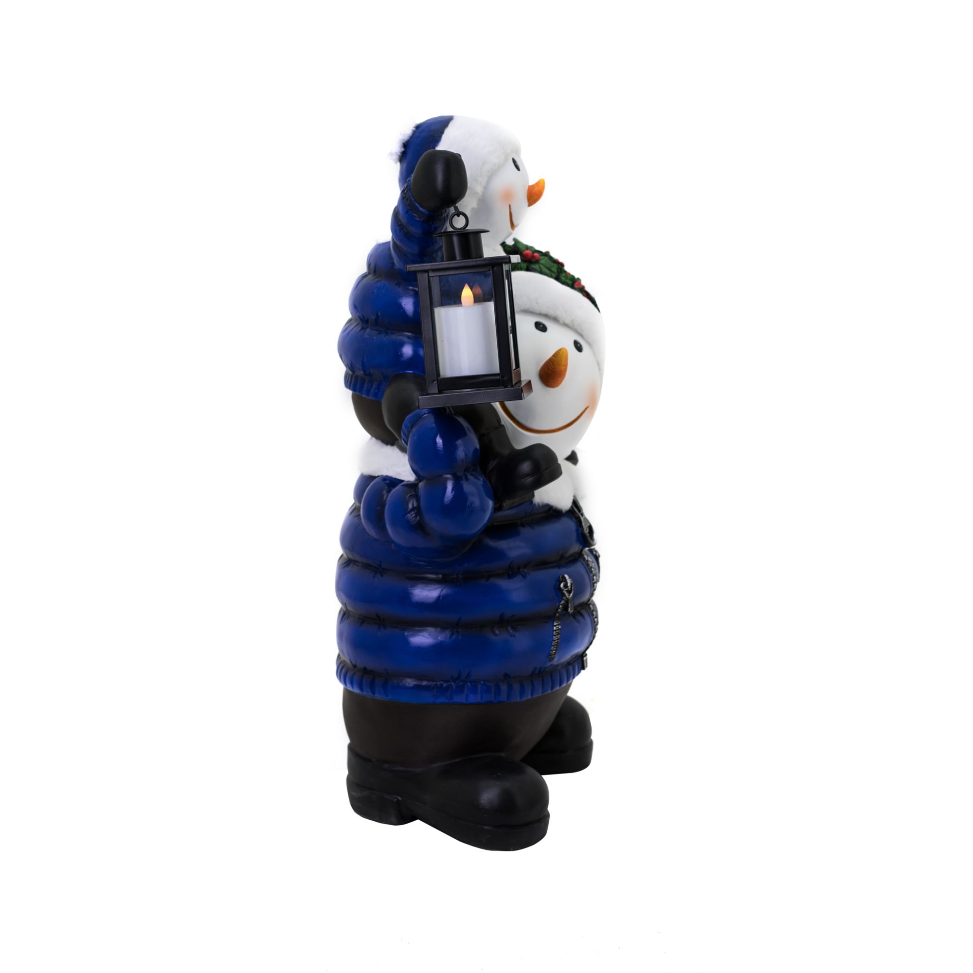 Requires 2/AAA batteries(not included) This item is not a toy, for decorative use only For indoor use Crafted and painted by hand Made of polyresin Made in China Includes stacked door greeter snowman Warranty: 1 year