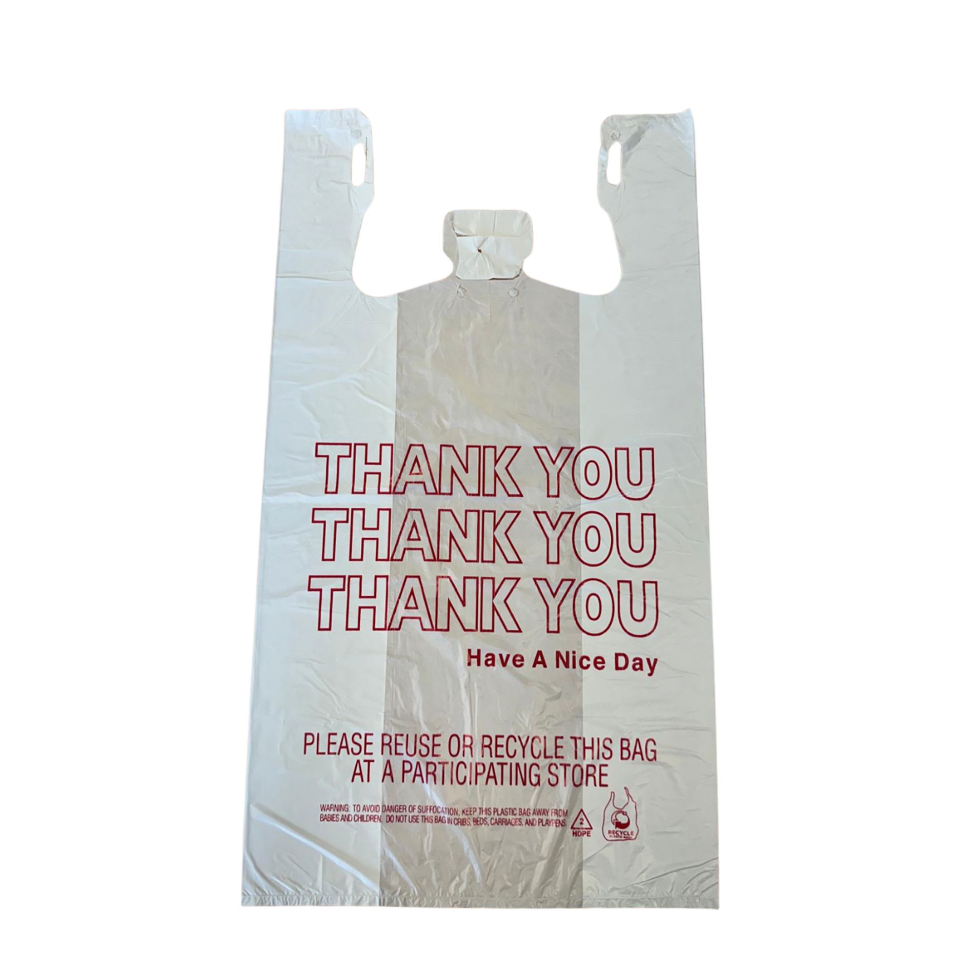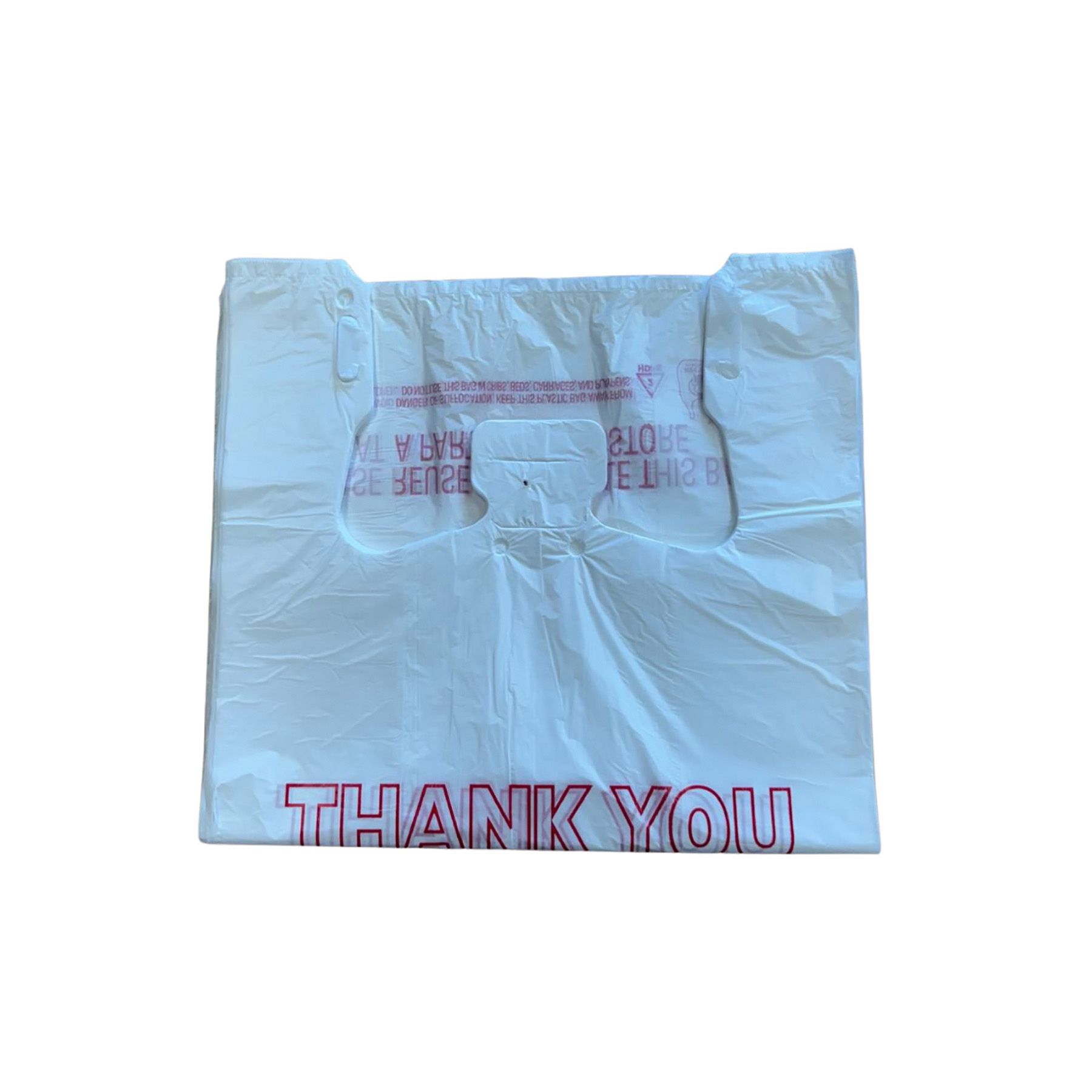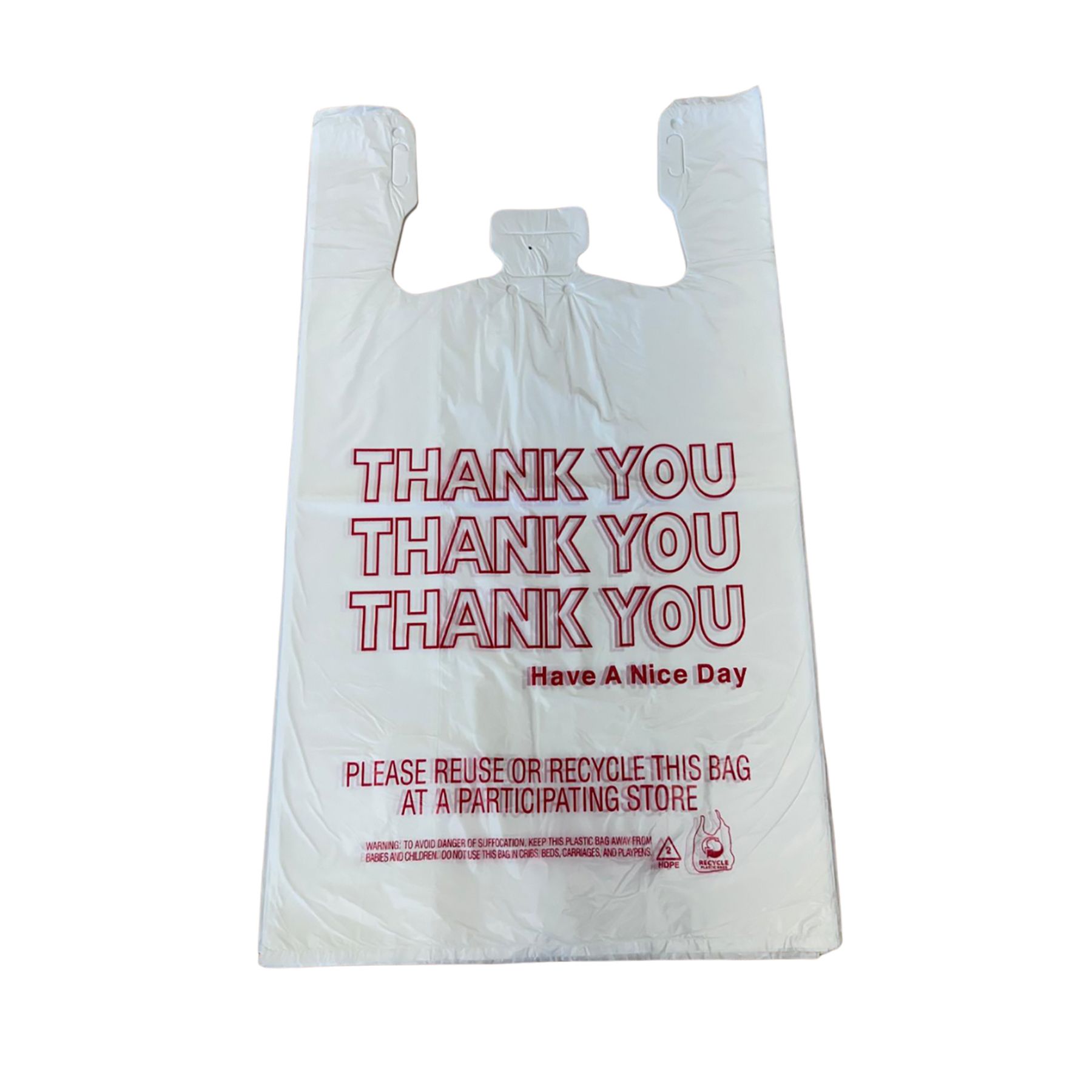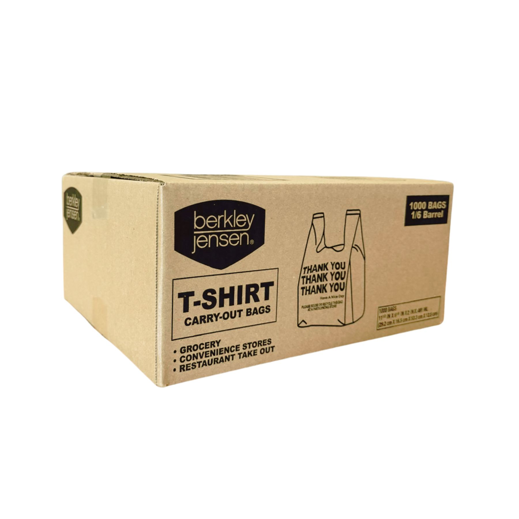 Made for merchandise carry-out, these white "Thank You" basic T-sack bags say it all. Boasting a 1/6 barrel capacity, they are ideal to hold everything from take-out food to grocery and convenience store items.