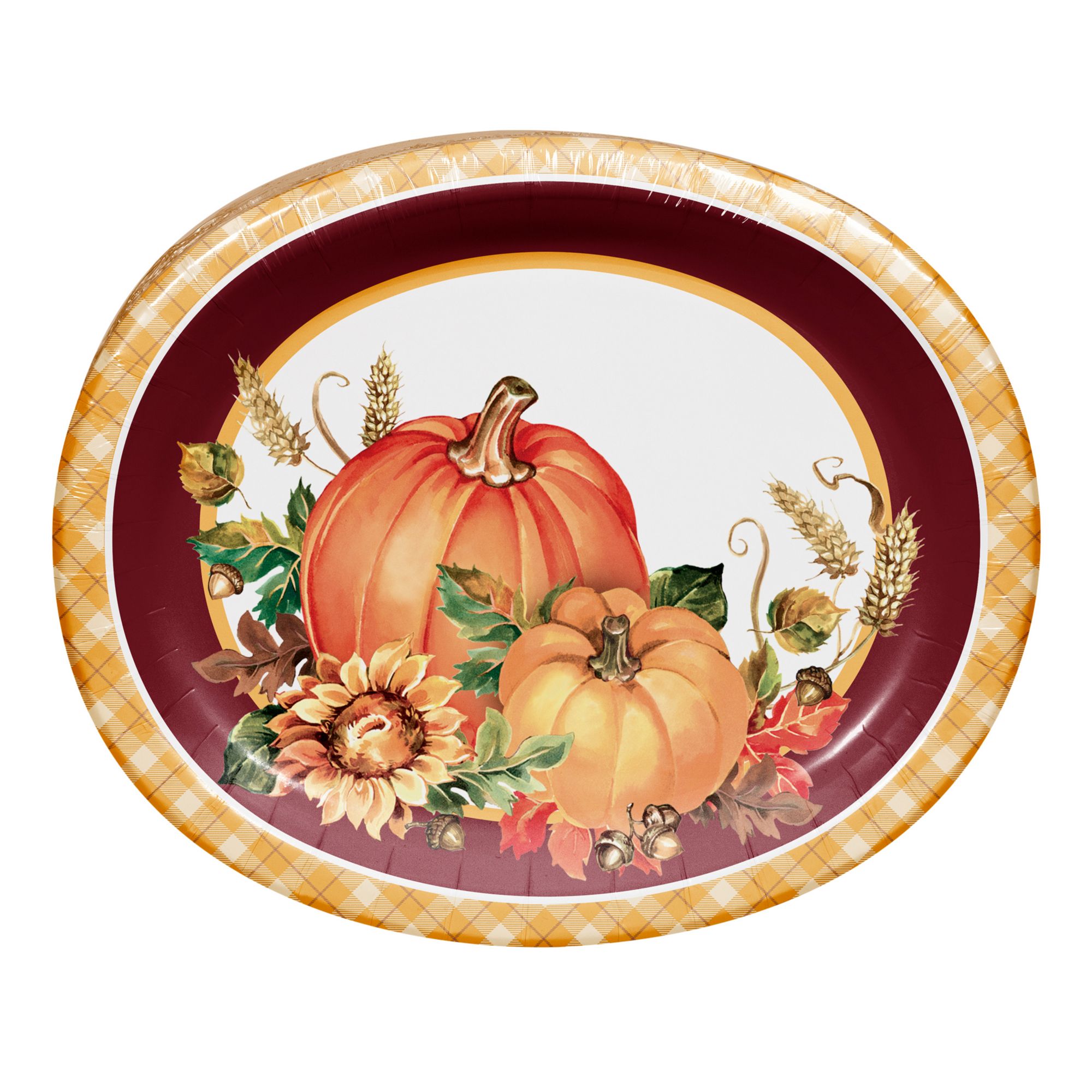 Set the table with help from our BJ's exclusive 'Thanks For The Harvest' oval platter. Measuring 10" x 12", these versatile paper platters are disposable for easy serving. This beautiful design is perfect for any fall gathering. Sold in packs of 60. Pair this oval platter with a coordinating premium dinner napkin, 10" paper plate or 7" dessert plate. These plates are strong and durable for any occasion, party, meal, or gathering.
