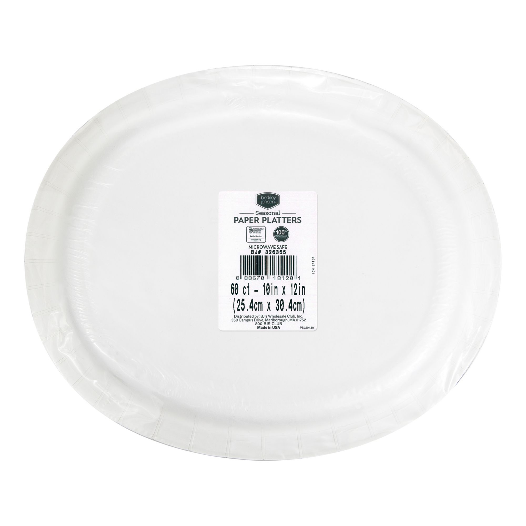 Exclusively at BJ's Choose from 7" dessert plates, 10" paper plates, oval platters, premium dinner napkin (all sold individually) Product of the USA Cut resistant Soak proof Includes oval platters, 60 ct.