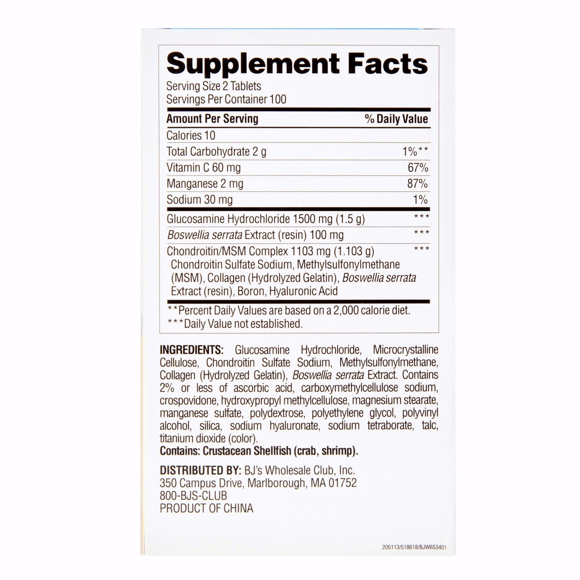 Includes glucosamine chondroitin supplement tablets, 200 ct.