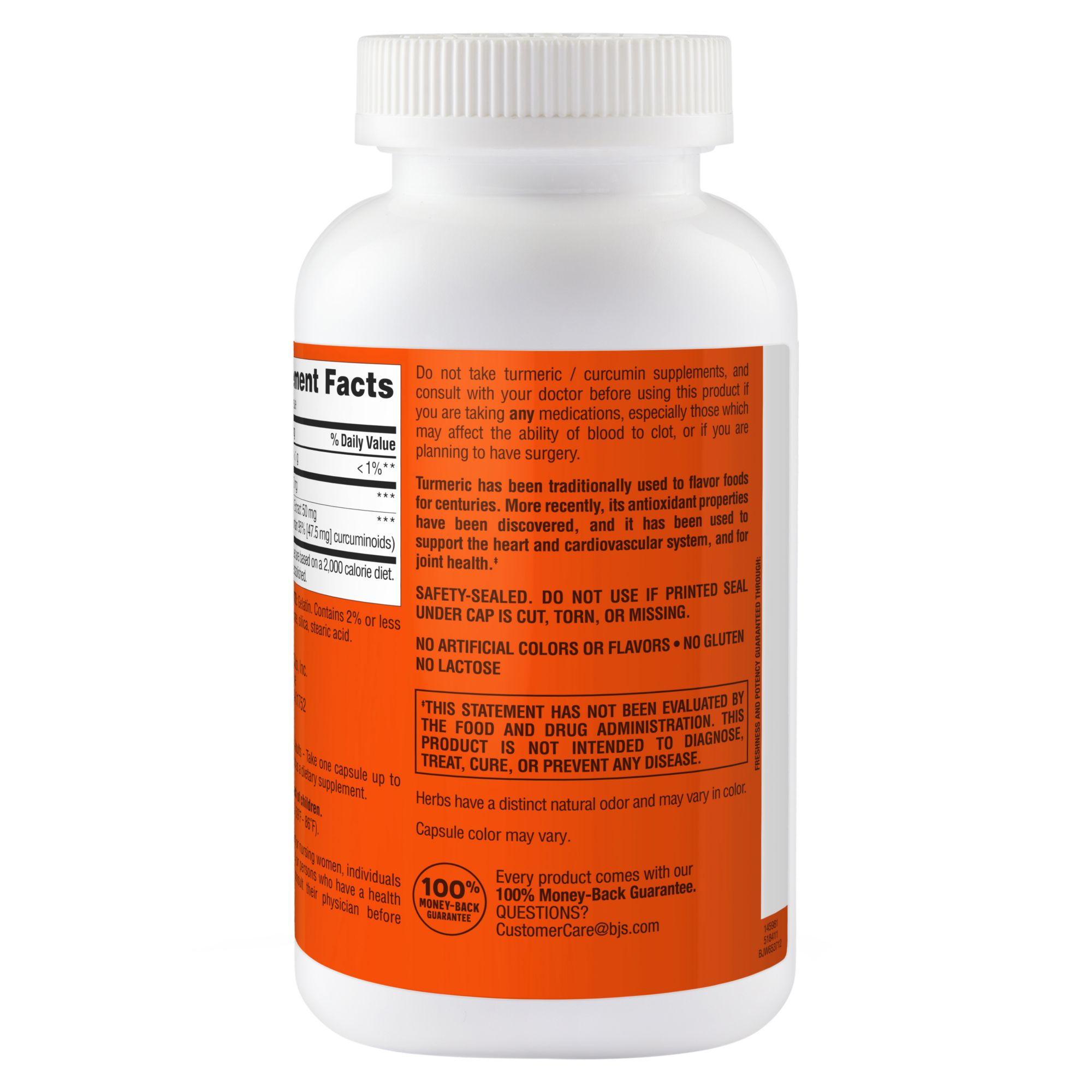 Product Warnings and Restrictions: Warning: Pregnant or Nursing Women, Individuals Taking Medication(s), or Persons Who Have a Health Condition Should Consult Their Physician Before Using This Product. Do Not Take Turmeric / Curcumin Supplements, and Consult With Your Doctor Before Using This Product If You Are Taking Any Medications, Especially Those Which May Affect the Ability of Blood to Clot, or If You Are Planning to Have Surgery. Keep Out of the Reach of Children. Safety-Sealed. Do Not Use If Printed Seal Under Cap Is Cut, Torn, or Missing.