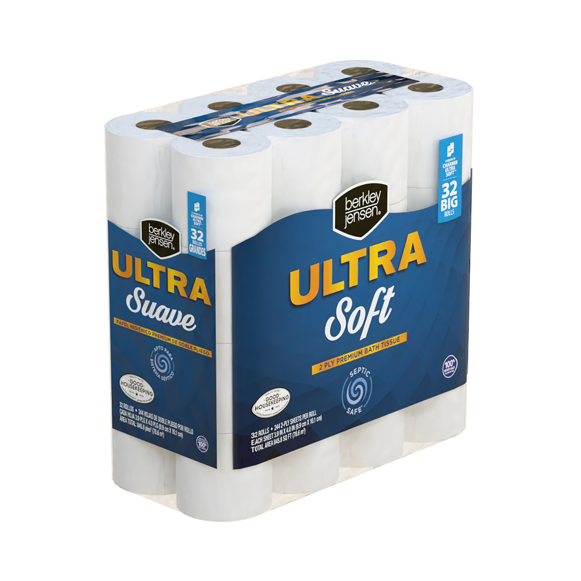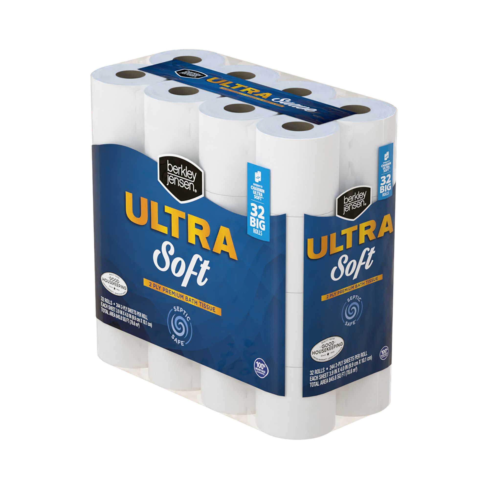 Berkley Jensen Ultra Soft Bath Tissue comes in a pack of 32 rolls, with 244 sheets per roll. Berkley Jensen Ultra Soft Bath Tissue is the ultimate in softness, comfort and thickness. This tissue pack includes 32 big septic-safe rolls and delivers the perfect balance of being gentle and absorbent (with just the right amount of strength).