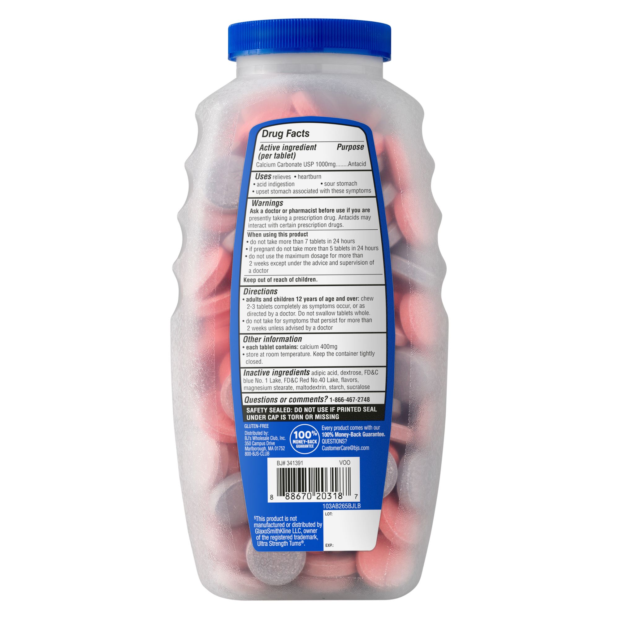 Berkley Jensen antacid tablets ultra strength. Berkley Jensen Ultra Strength Antacid Tablets not only serve as an additional source of calcium but also provide swift relief from heartburn, upset stomach, and acid indigestion. These easy-to-chew tablets come in an assorted berry flavor, making them a pleasant way to alleviate discomfort. Key features: delicious assorted berry flavor, an extra source of calcium, effective relief from heartburn, upset stomach, and acid indigestion. Compare to the active ingredient in Tums Ultra Strength (this product is not manufactured or distributed by GlaxoSmithKline, the distributor of Tums Ultra).