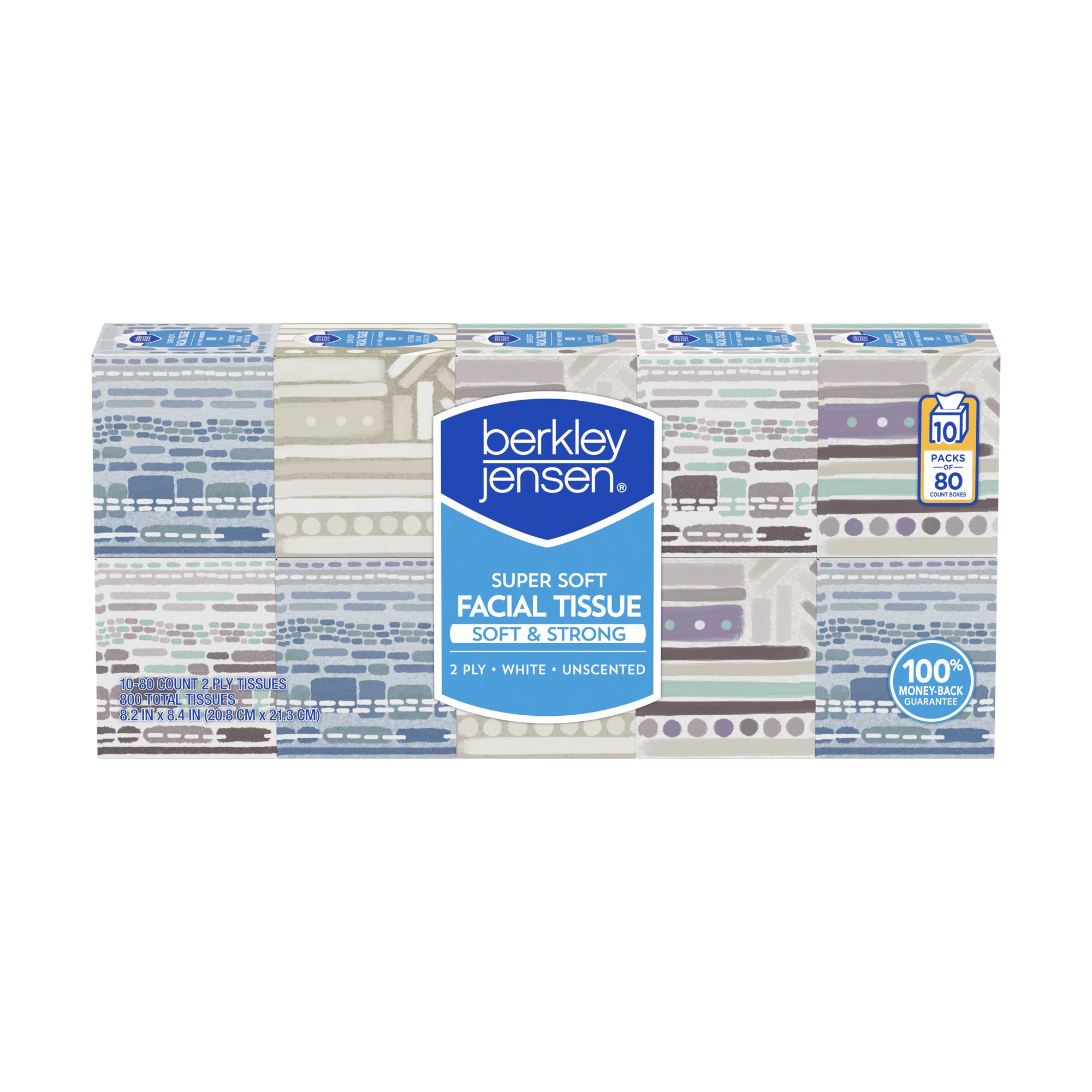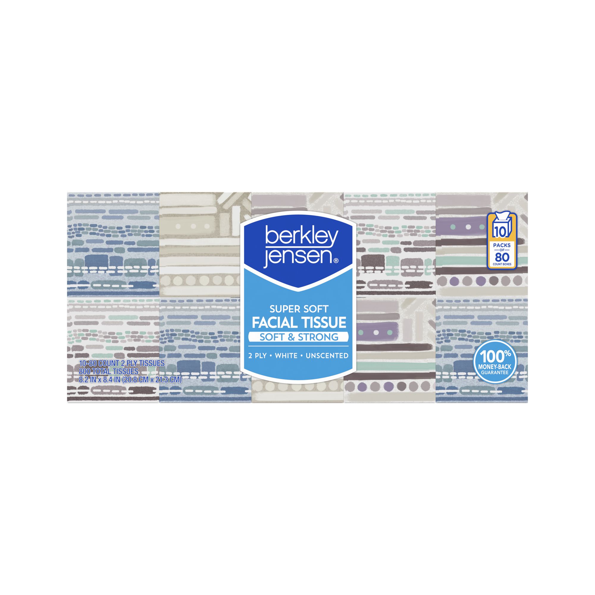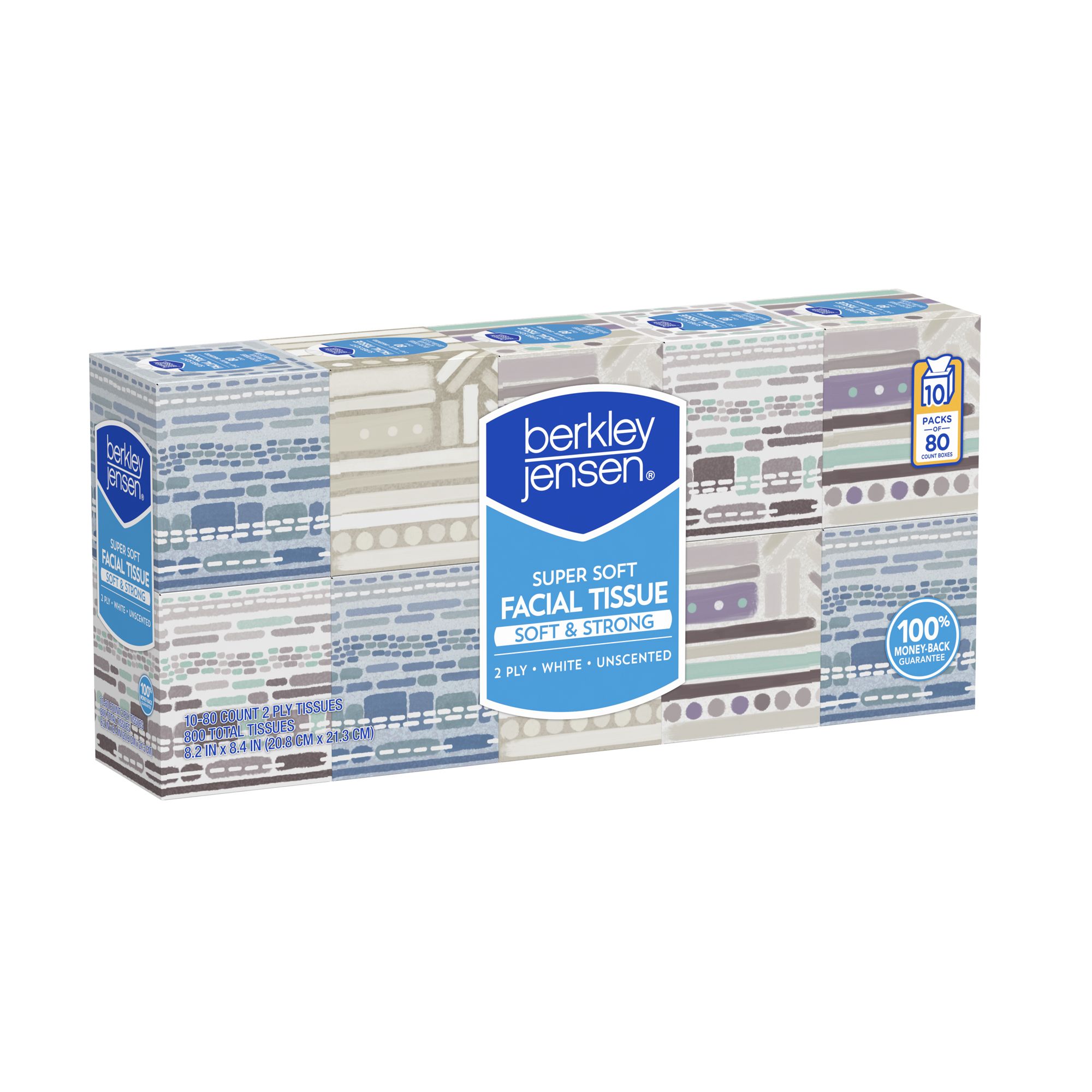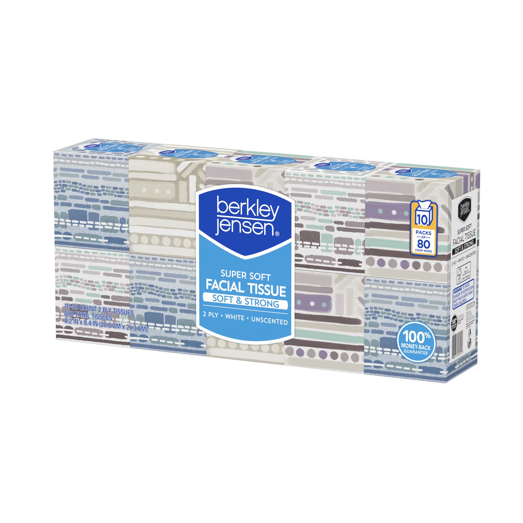 Super soft tissue 800 total tissues Cartons have an attractive design 80 tissues per carton White unscented tissue Forest Stewardship Council (FSC) certified Includes 10 boxes with 80 tissues each