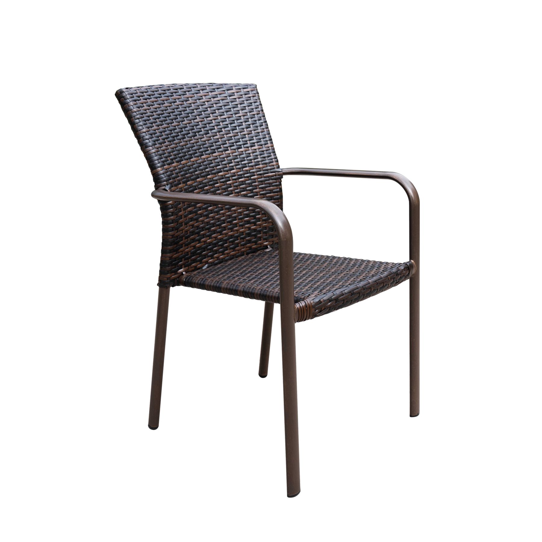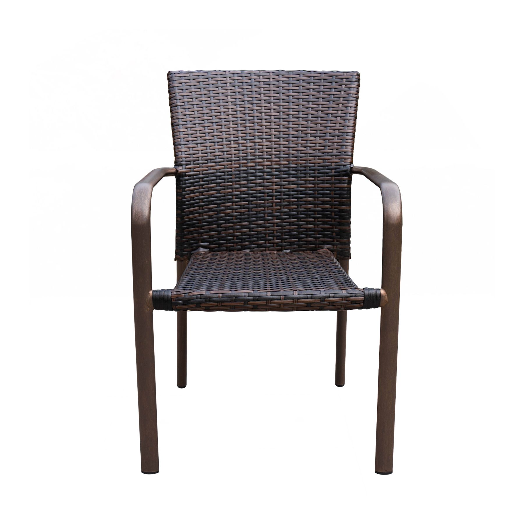 Combining the benefits of practicality and style, this elegant modern design brown wicker chair will compliment any garden, balcony, poolside, patio or any outdoor space, offering you and your friends the ultimate outdoor dining experience. It is made of rust-resistant and durable aluminum frame and weather-resistant PE rattan wicker, this chair is strong enough to last through the seasons and ensure a long lifetime. The stackable design allows it can be stacked for storage and saving space if required. The lightweight aluminum and resin wicker materials structures with the portable design enable you to easily carry it to the place you prefer. This chair comes fully assembled. A smooth hand-painted armrest and woven wicker seat and backrest make it extremely comfortable to sit on. Plastic foot caps keep the floor from scratching.